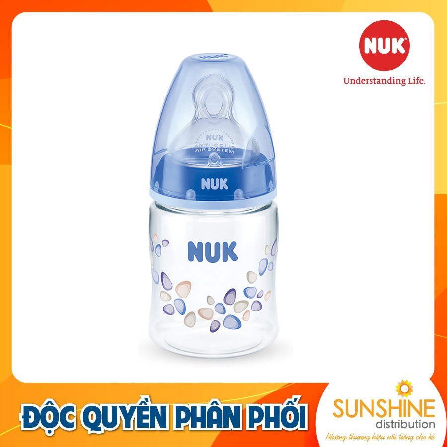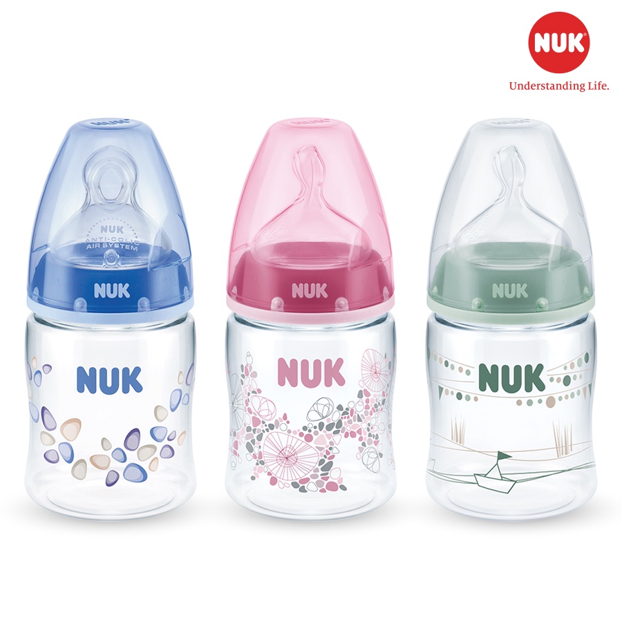 Bình sữa cổ rộng NUK nhựa PA 150ml núm ti Silicone S1 - M chỉnh nha chống sặc chống đầy hơi