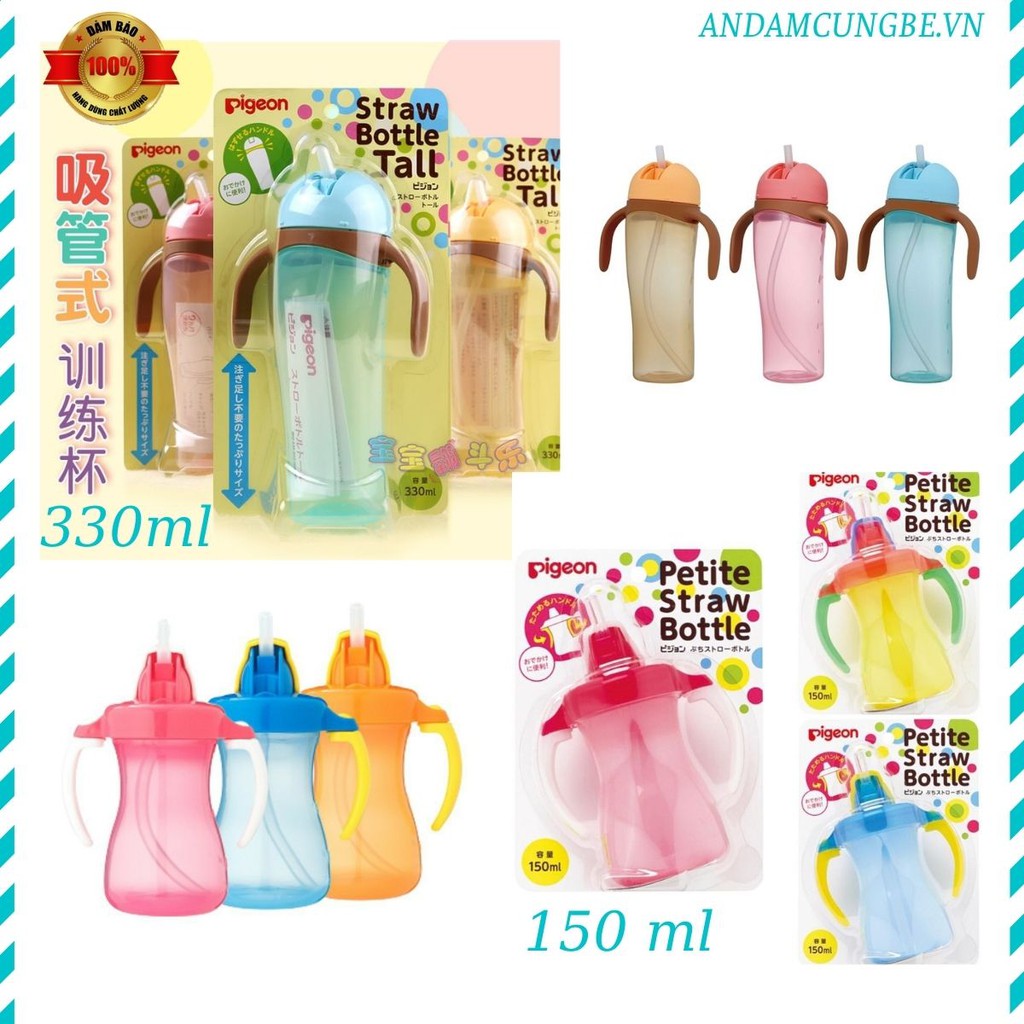 Bình uống nước cho bé có ống hút Pigeon chính hãng, cốc tập uống nước cho bé 490250
