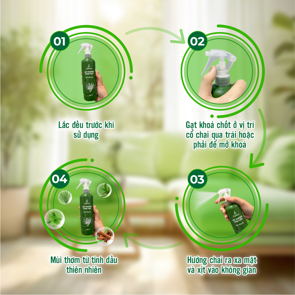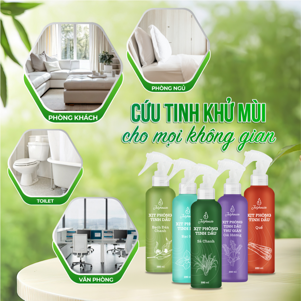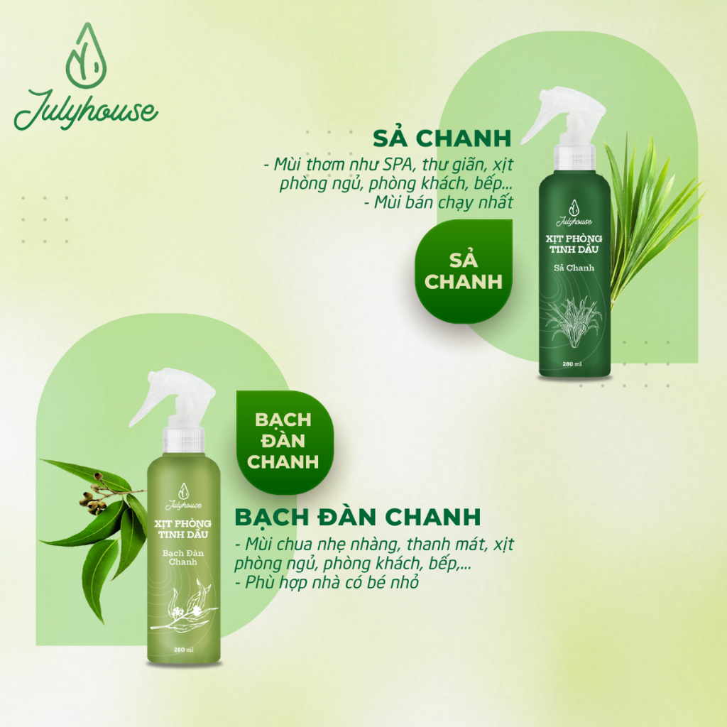 Bình Xịt Phòng Tinh Dầu Sả Chanh, Bạc Hà, Quế, Bạch Đàn Chanh Đuổi Muỗi 280ml Julyhouse - YOOSOO