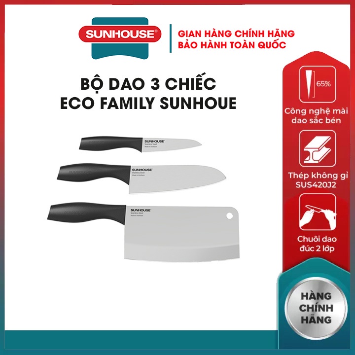 Bộ dao bếp cao cấp Sunhouse lưỡi dao siêu bền làm từ thép không gỉ SUS420