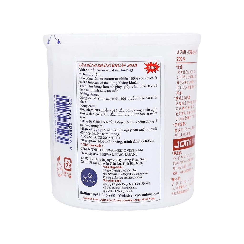 Bông Tăm kháng khuẩn Jomi hộp tròn 200 que và 160 que trẻ em