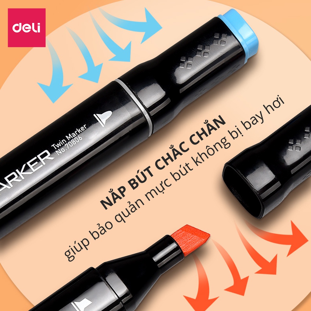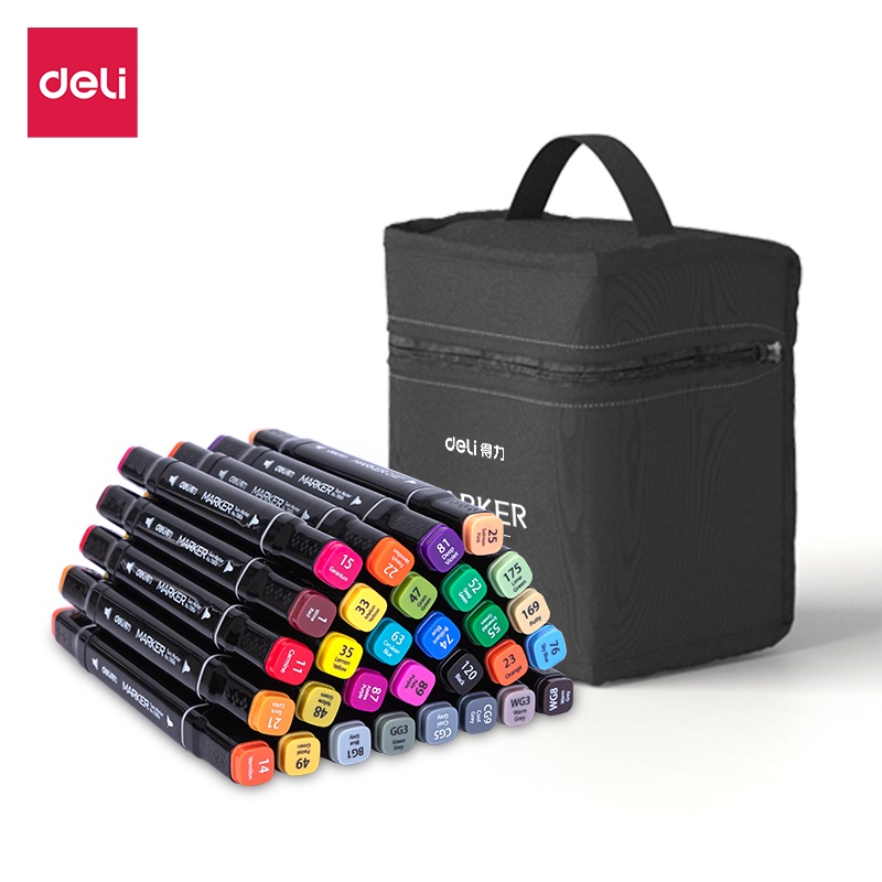 Bút Màu Dạ Marker 2 Đầu Chuyên Nghiệp Deli Kèm Túi Vải Vẽ Tranh Viết Calligraphy 30/40/60/80 Màu Đậm
