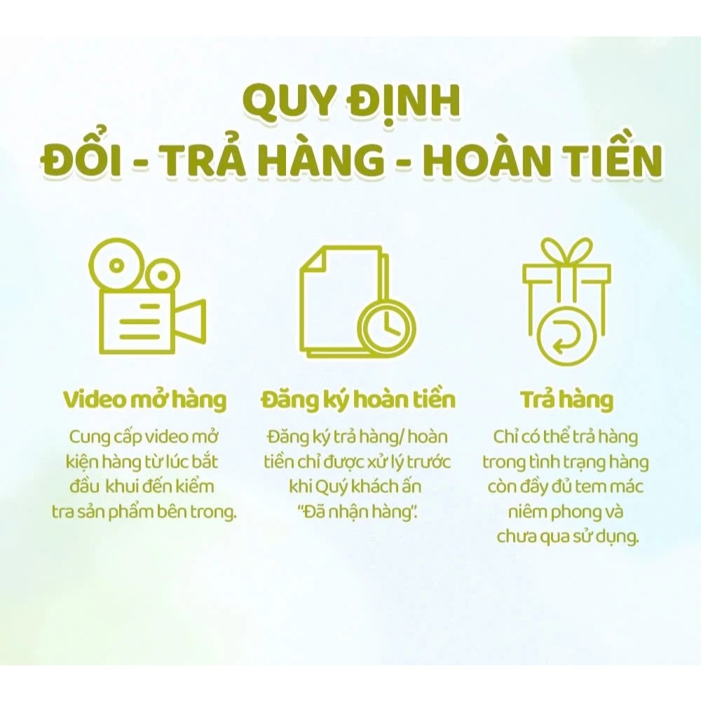 Trả hàng miễn phí 15 ngày • Chính hãng 100% • Miễn phí vận chuyển • Bảo hiểm bảo vệ người tiêu dùng
