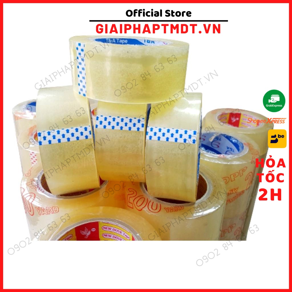 Băng keo trong vàng đục 200 yard 1kg8 2kg GIAIPHAPTMDT Băng dính hàng dễ vỡ 100 yard siêu dính dán thùng đóng gói TMDT2