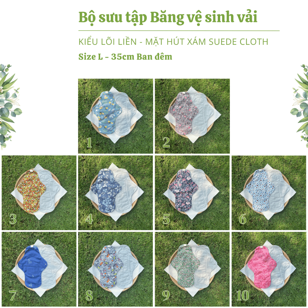 [WingPad] Băng vệ sinh vải - Mỗi size 1 Cái - Kiểu LÕI LIỀN - Mặt hút Xám Suede Cloth