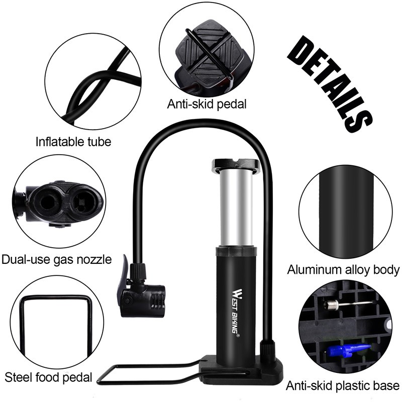 [Mã CLS2403F giảm 30k đơn 150k] Bơm Xe Đạp WEST BIKING YP0711055 Bằng Hợp Kim Nhôm Van Presta & Schrader