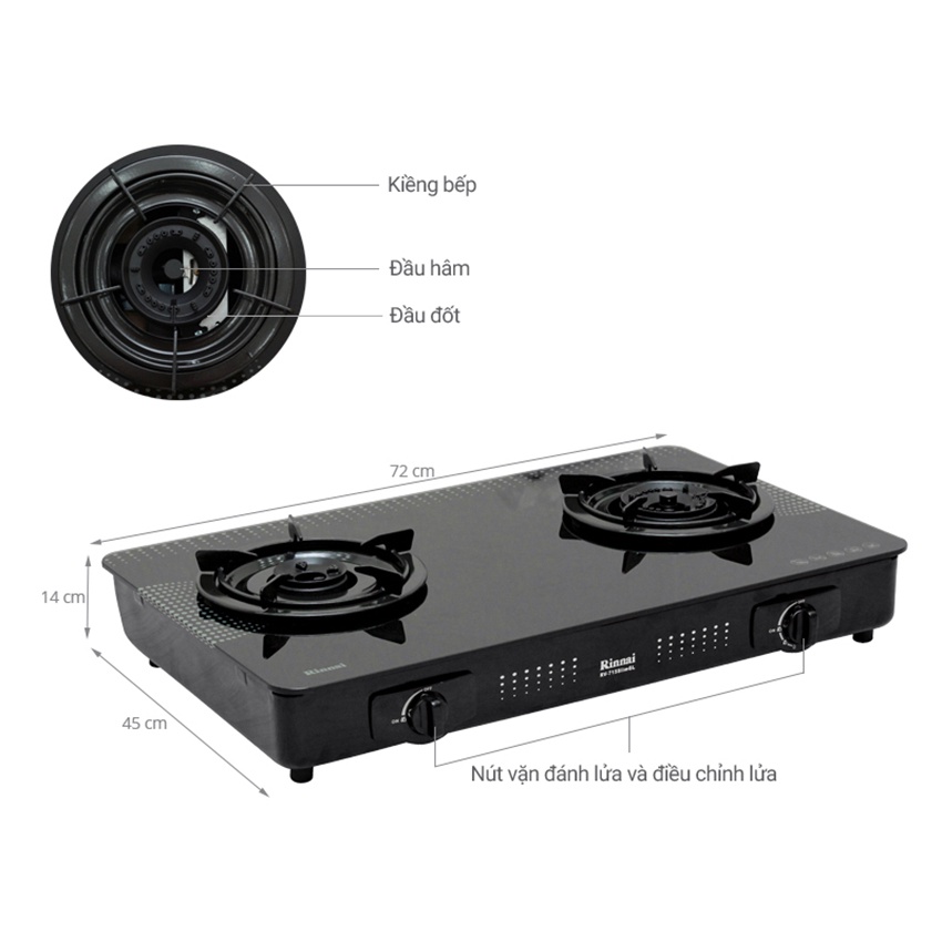 Bếp gas đôi Rinnai RV-715Slim(GL-D) và RV-615Slim(GL-D) Mặt kính cường lực, Lửa xanh, Tiết kiệm gas