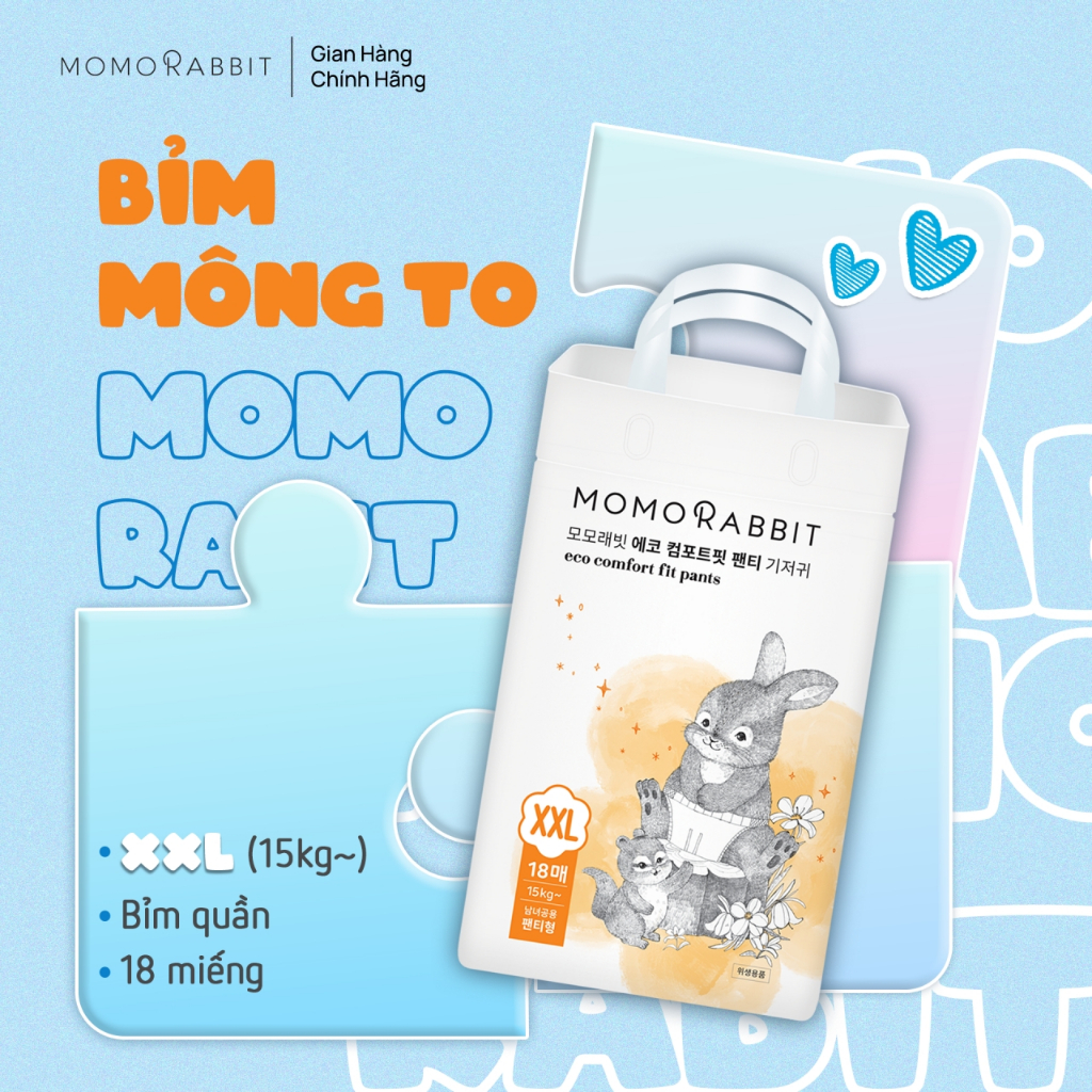 [1/3 - 31/3 MUA 1 BỊCH TẶNG 1 KHĂN ƯỚT] Bỉm quần mông to Momo Rabbit - Size XXL - 18 pcs - 15kg+