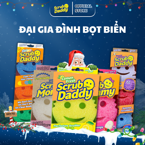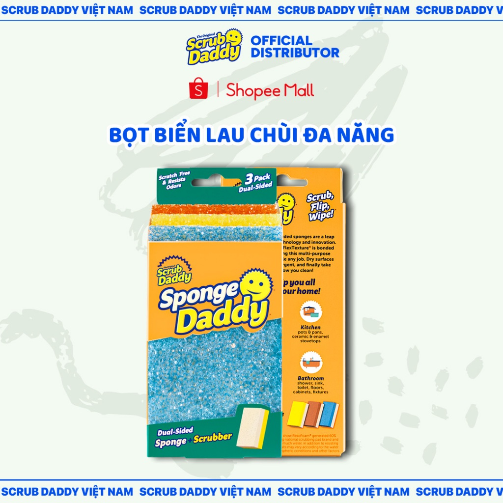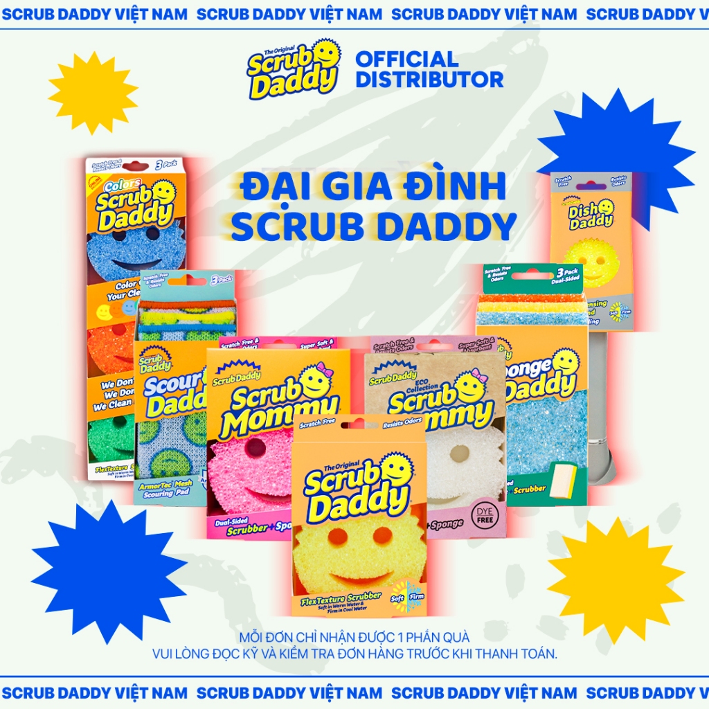 Bọt biển Scrub Daddy chính hãng Mỹ, miếng xốp lau chùi đa năng - an toàn - chống mùi - ngăn nắp