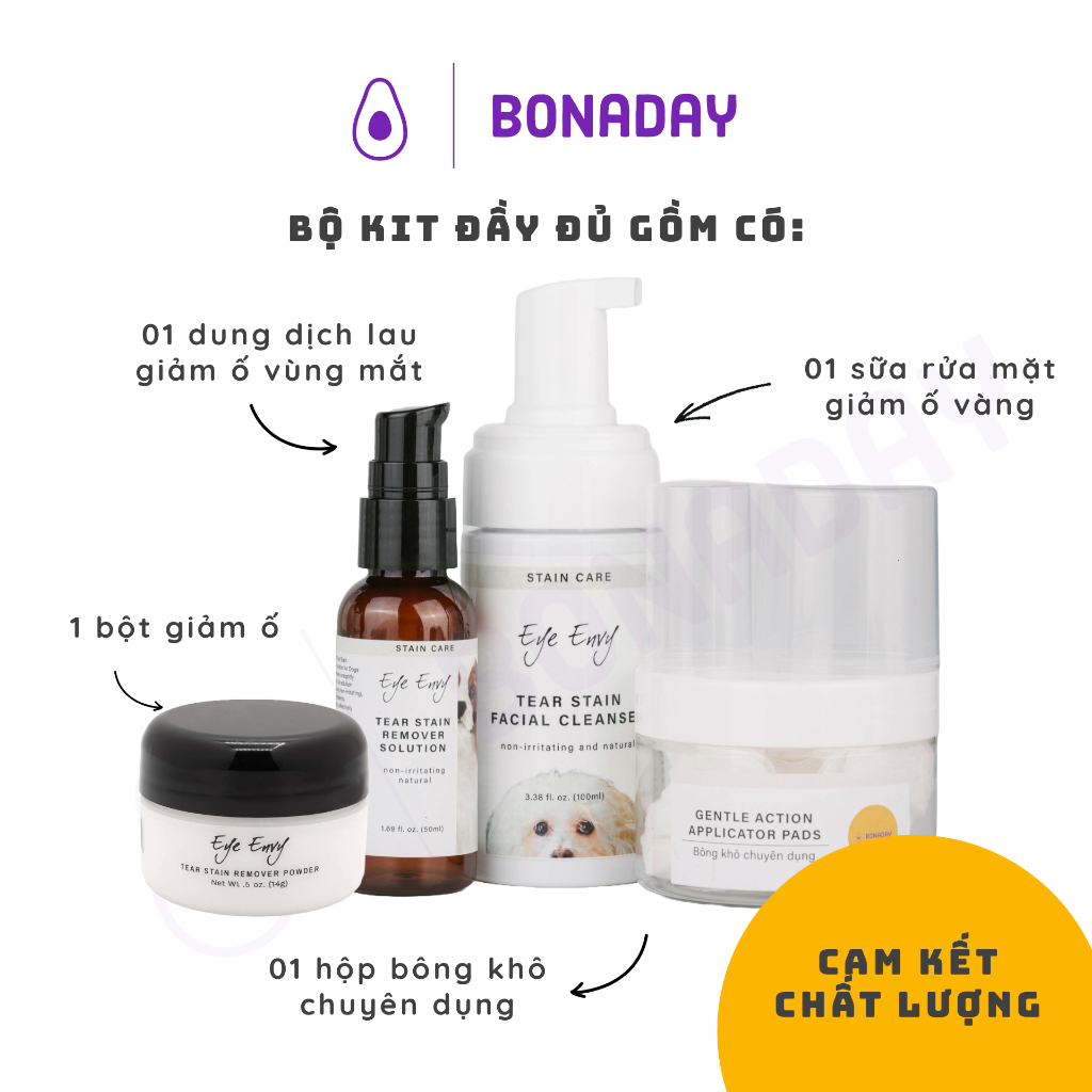 BỘ KIT LAU RỬA GIẢM Ố VÀNG CHO CHÓ EYE ENVY STAIN REMOVER STARTER KIT, BONADAY PETS, thành phần lành tính