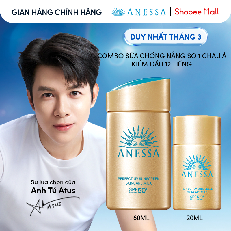 Combo Sữa chống nắng dưỡng da kiềm dầu bảo vệ hoàn hảo Anessa Gold Milk SPF50+ PA++++ 60ml + 20ml