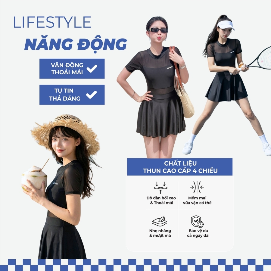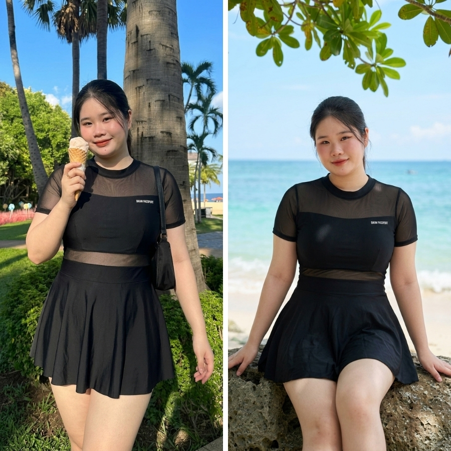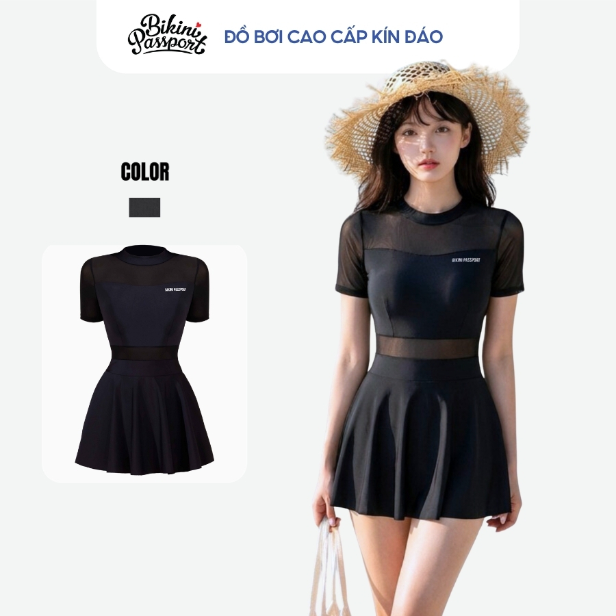 Đồ bơi một mảnh nữ tay ngắn che khuyết điểm đi biển - Bikini Passport - BS1020_BL