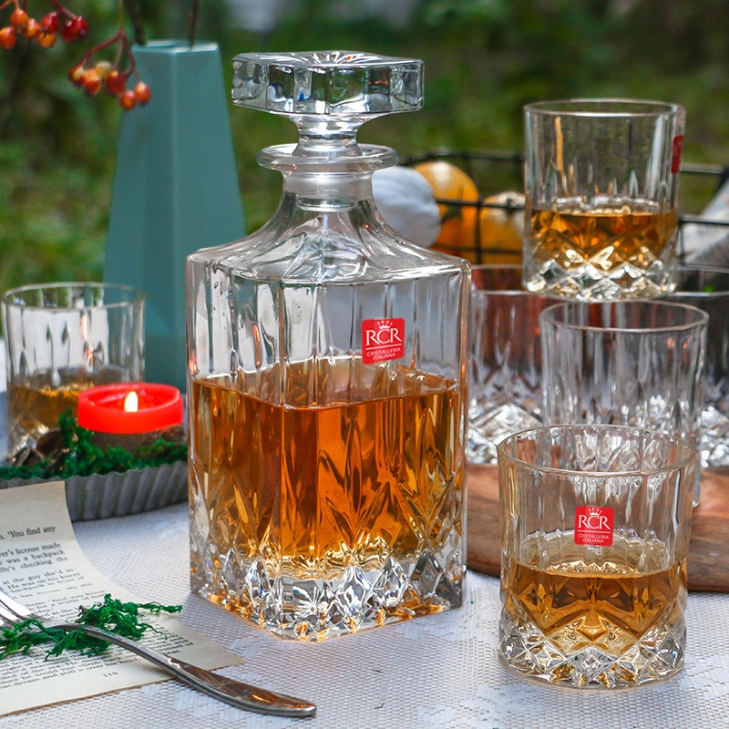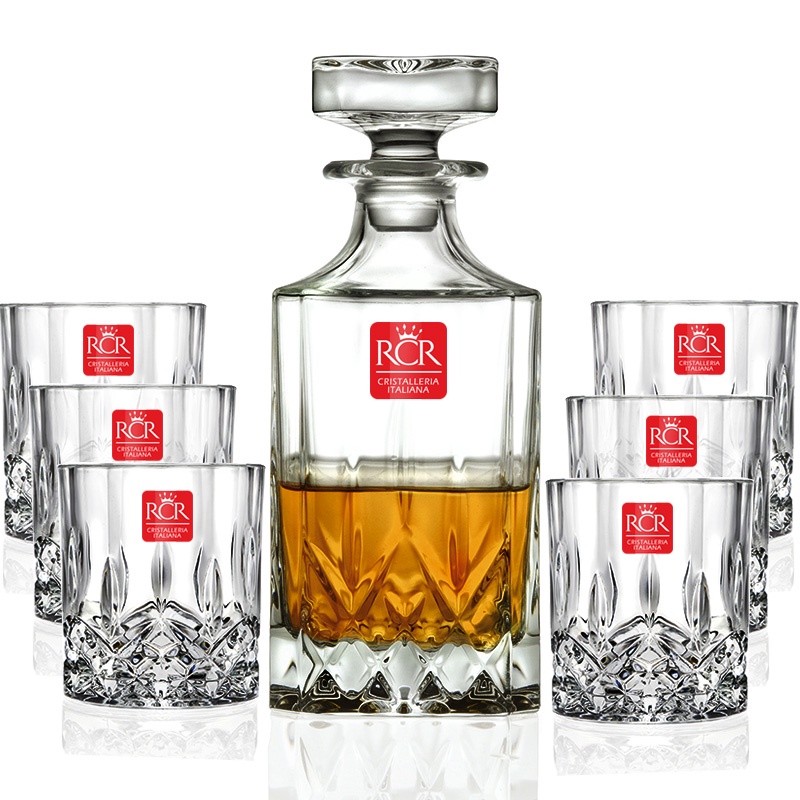 Bộ 1 Bình 750 ml và 6 Ly 300 ml thủy tinh pha lê Ý RCR - Opera Whisky