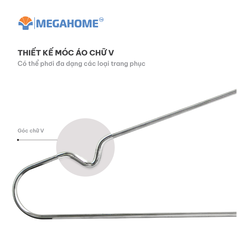 Bộ 10 Móc Inox Cao Cấp MegaHome, Thiết Kế Chữ V Độc Đáo Không Gỉ Không Trượt Chịu Lực Tốt, Tiện Lợi