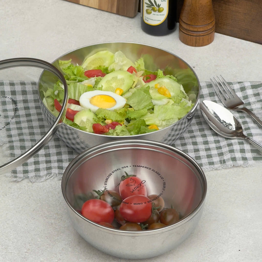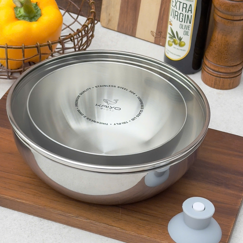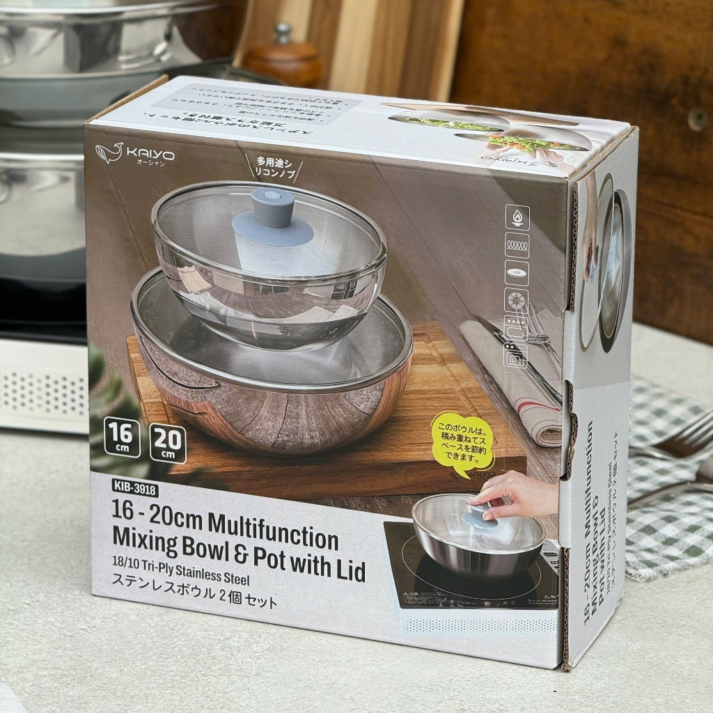 Bộ 2 âu đựng thực phẩm inox 18/10 Kaiyo có vung kiêm chức năng nồi