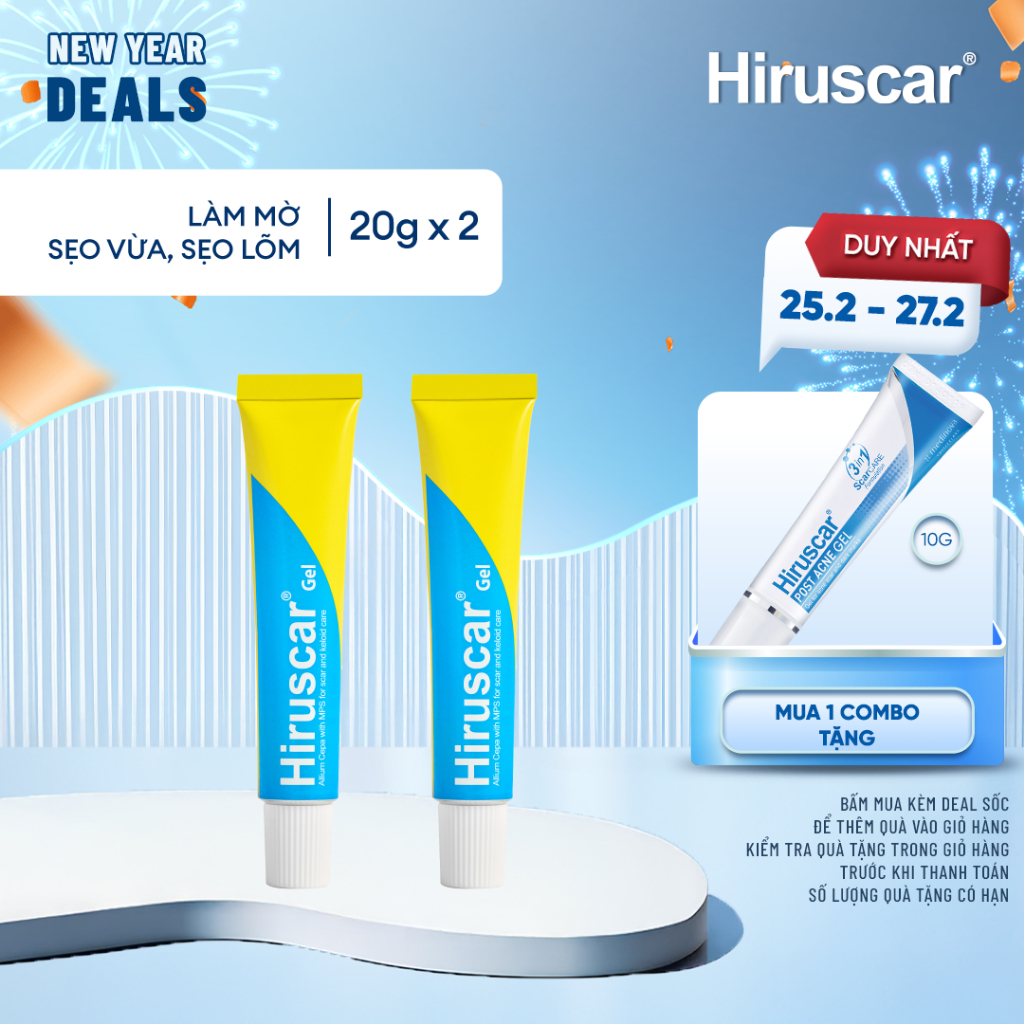 Bộ 2 Gel cải thiện sẹo vừa, sẹo lõm, sẹo thâm Hiruscar Gel 20g