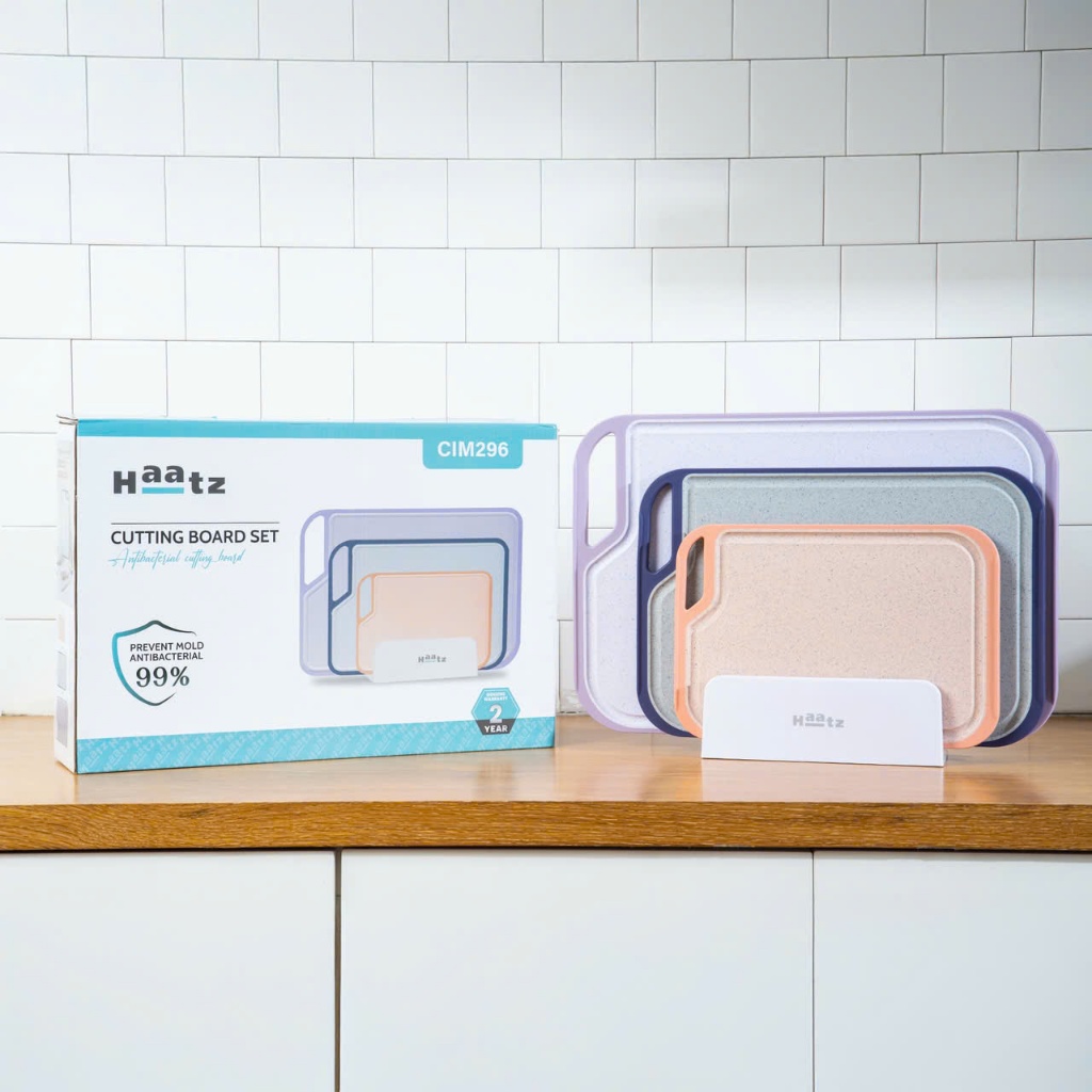 Bộ 3 thớt nhựa kháng khuẩn Haatz CIM296 kèm giá đặt