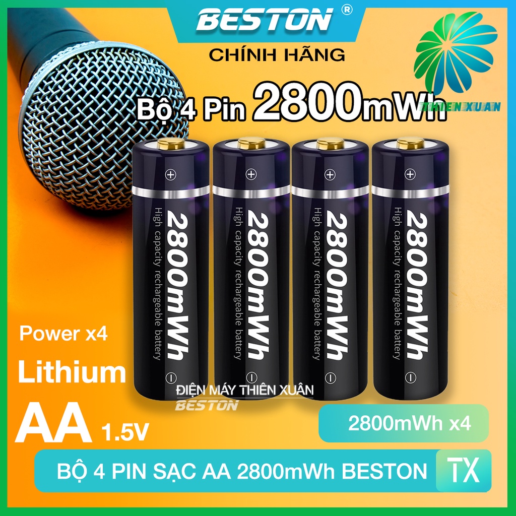 Bộ 4 pin tiểu sạc AA (2A) 1.5V 2800mWh Beston Lithium-ion cao cấp