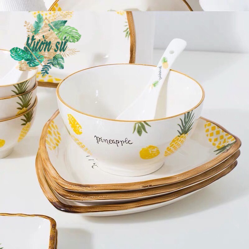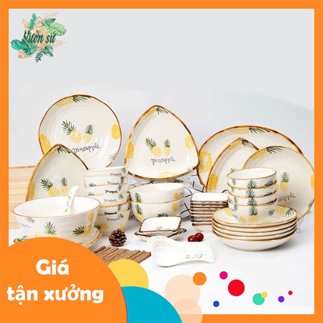 Bộ bát đĩa sứ 56 món hoạ tiết DỨA VÀNG cao cấp - VS329