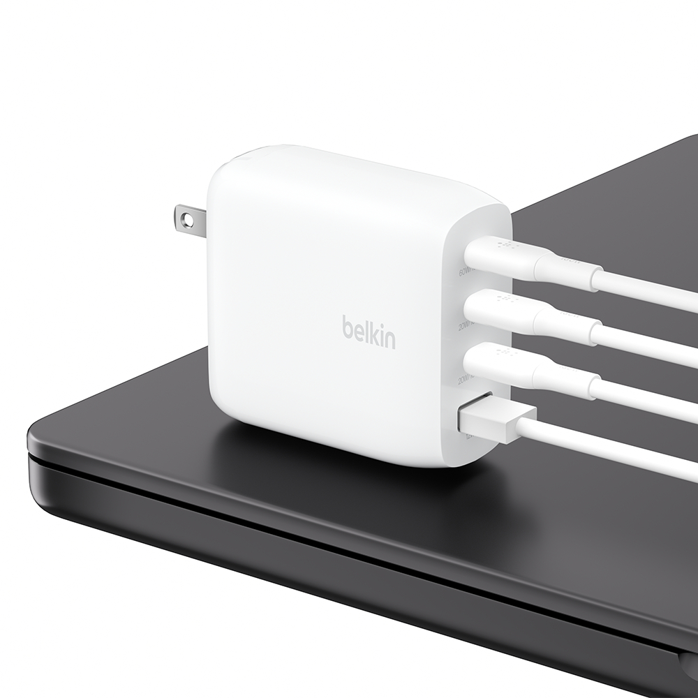 Bộ Adapter sạc nhanh Belkin 112W 4 cổng và cáp C-C 2M, 3 USB-C + 1 USB-A GaN màu trắng