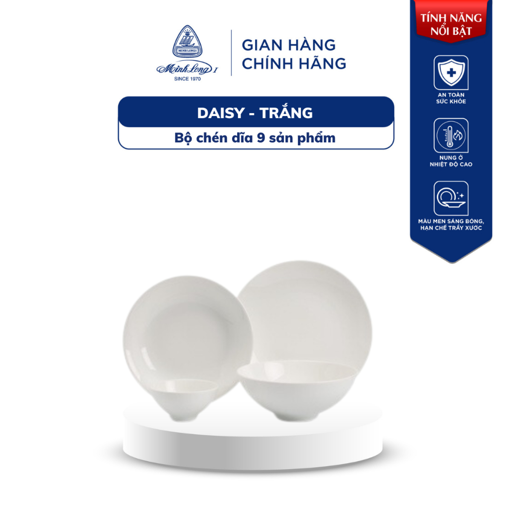 Bộ Chén Dĩa Sứ Cao Cấp Minh Long - Daisy - Trắng
