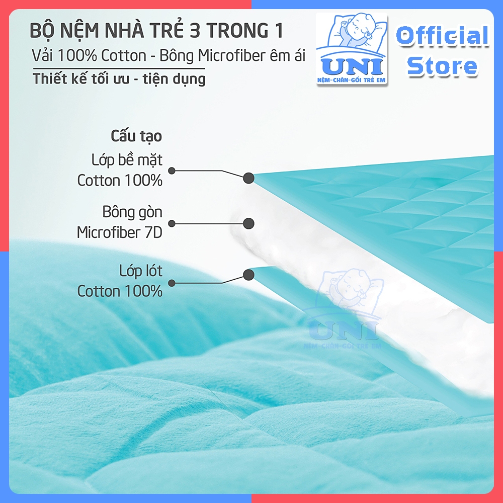 Bộ Chăn Gối Nệm Trẻ Em 3 IN 1 Cotton Xốp Cara Mềm Mát Cho Bé Đi Học Mầm Non Mẫu Giáo Tiện Lợi