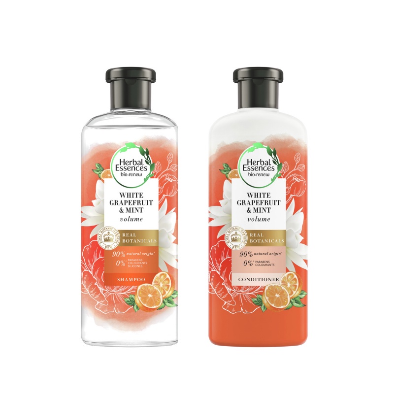 Combo Dầu Gội Và Dầu Xả HERBAL ESSENCES Bồng Bềnh Chiết Xuất Bưởi & Bạc Hà - Chai 400ML x2