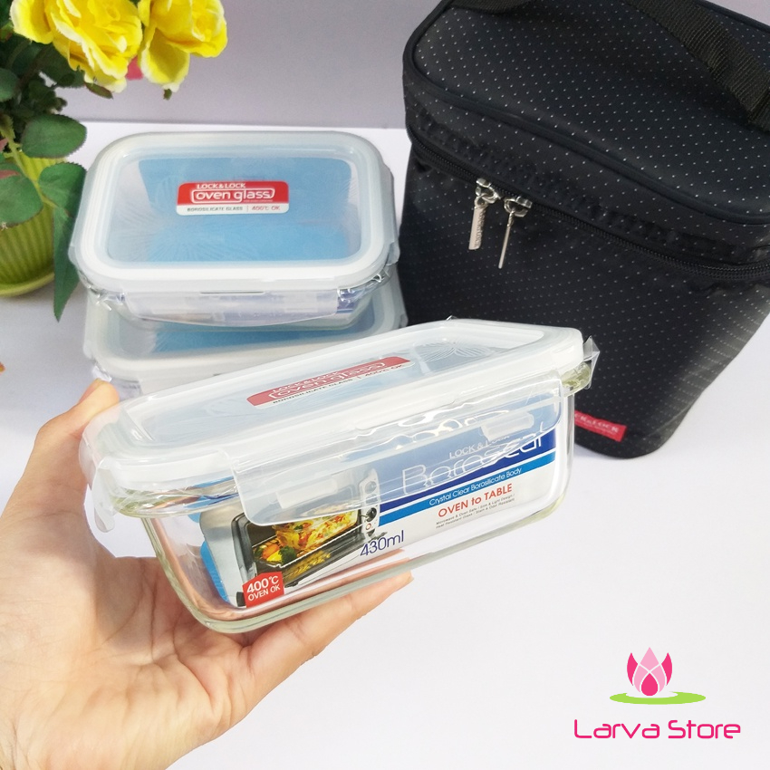Bộ Hộp Cơm Thủy Tinh Chịu Nhiệt Lock&Lock LLG426S3 (530ml + 430ml*2) - Larva Store