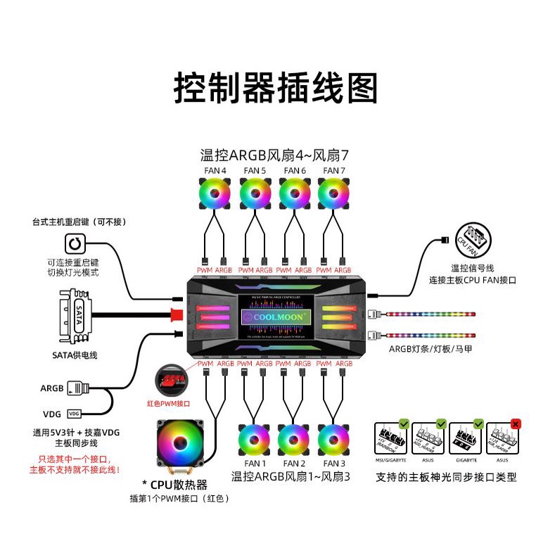 Bộ Hub Coolmoon PA-1 Music Đổi Màu Theo Nhạc Dùng Cho Fan Led ARGB Có Điều Tốc PWM - Màu Đen / Trắng