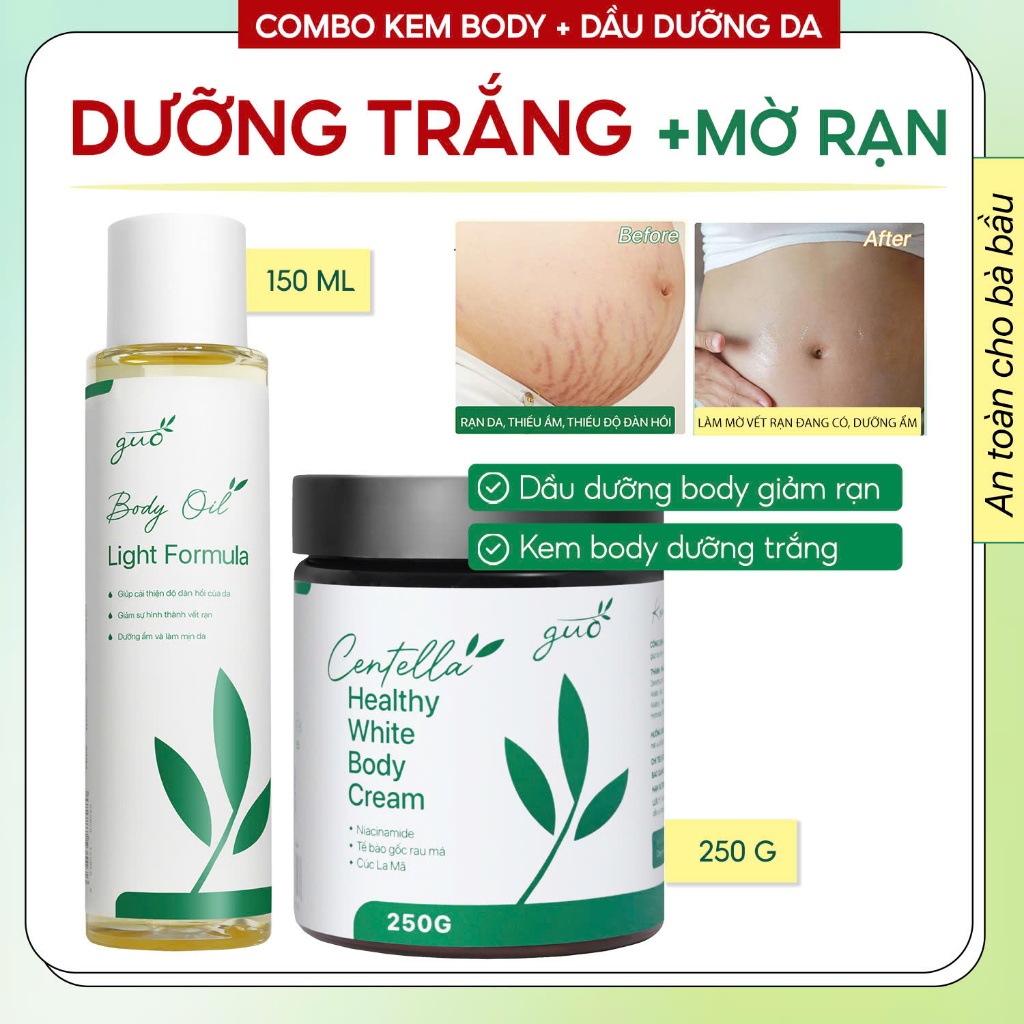 Bộ Mỹ Phẩm Ngừa và Giảm Rạn Kem Body + Dầu Body Oil Dành Cho Mẹ Bầu GUO