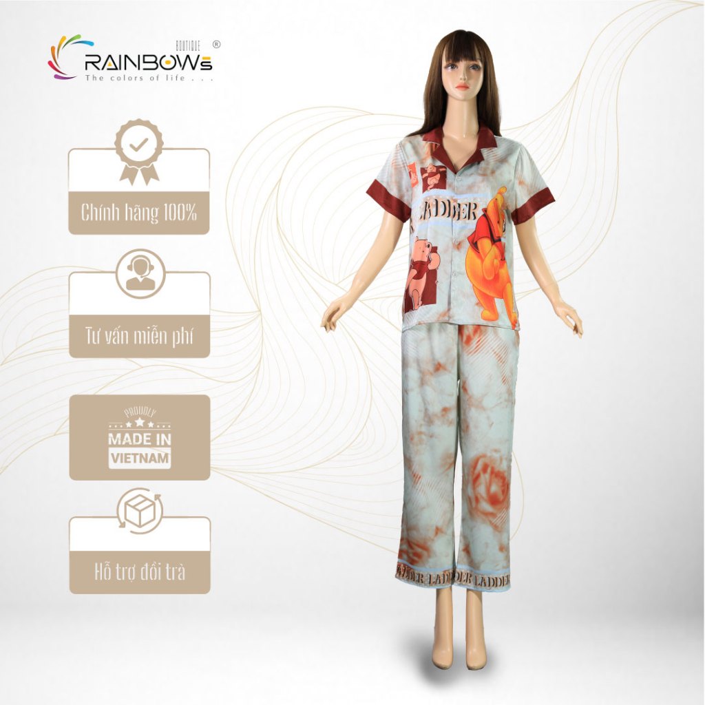 Bộ Pijama Ngắn Tay Mặc Nhà RAINBOWS, Đồ Ngủ Nữ Lụa Cao Cấp, Họa Tiết Siêu Dễ Thương - PI1