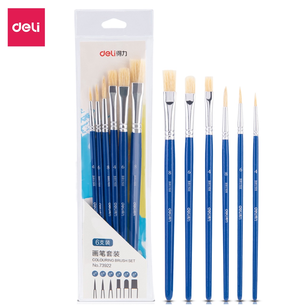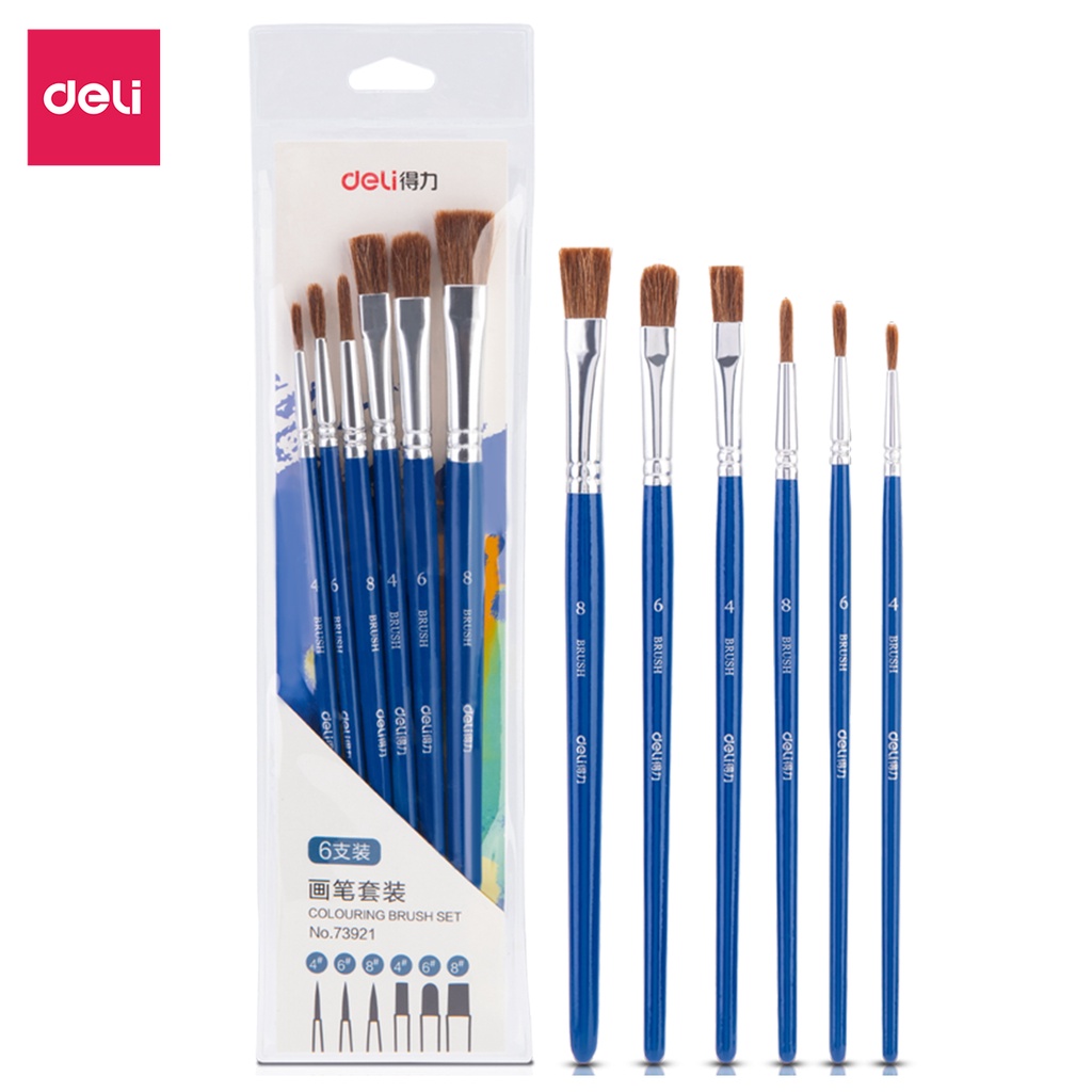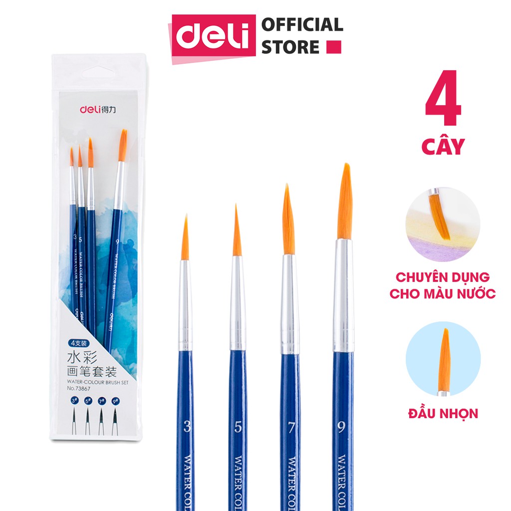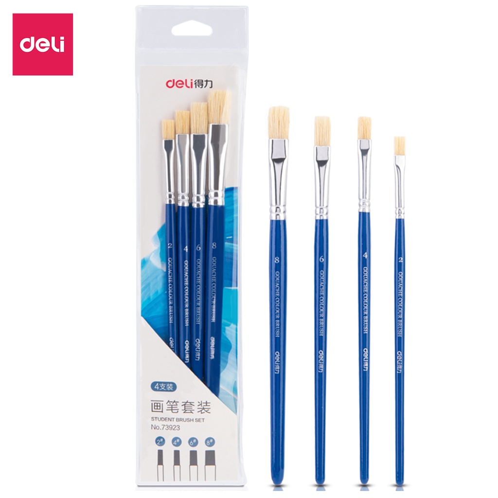 Bộ cọ vẽ chuyên nghiệp Deli - Dùng cho màu nước/ Gouache/ sơn acrylic -Set 4/6 cây - Cọ niken, Cọ lông ngựa, lông lợn