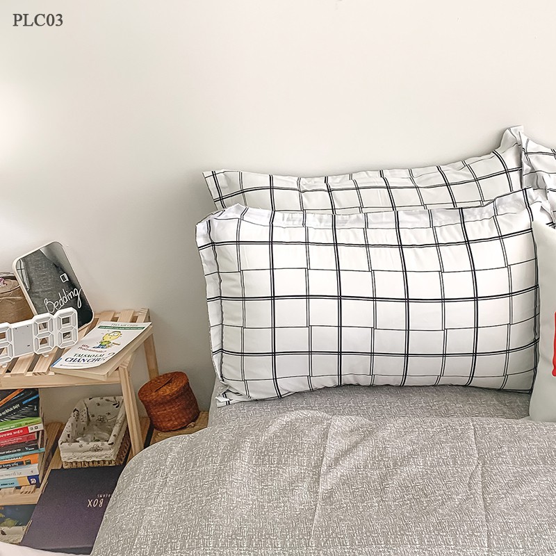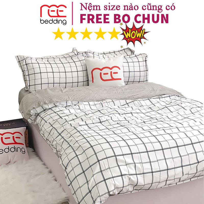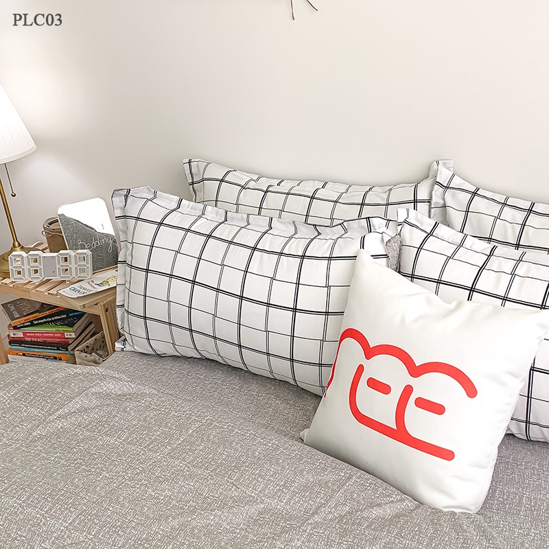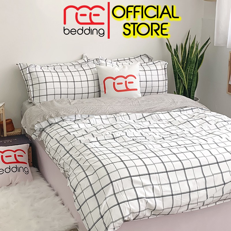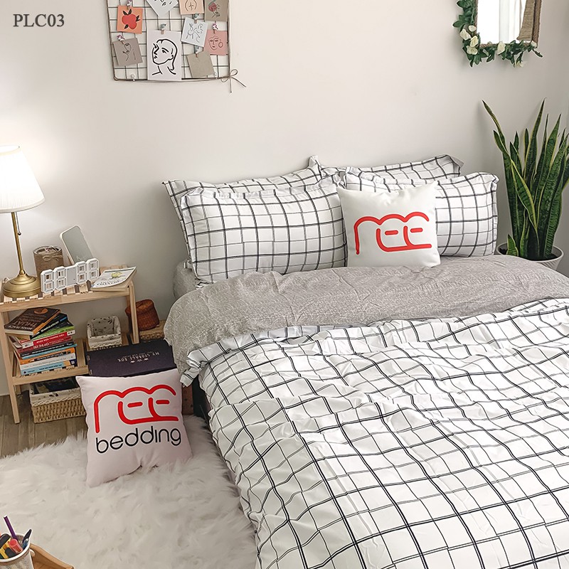 Bộ chăn ga gối REE Bedding PLC03 Poly Cotton caro trắng đủ size giường nệm