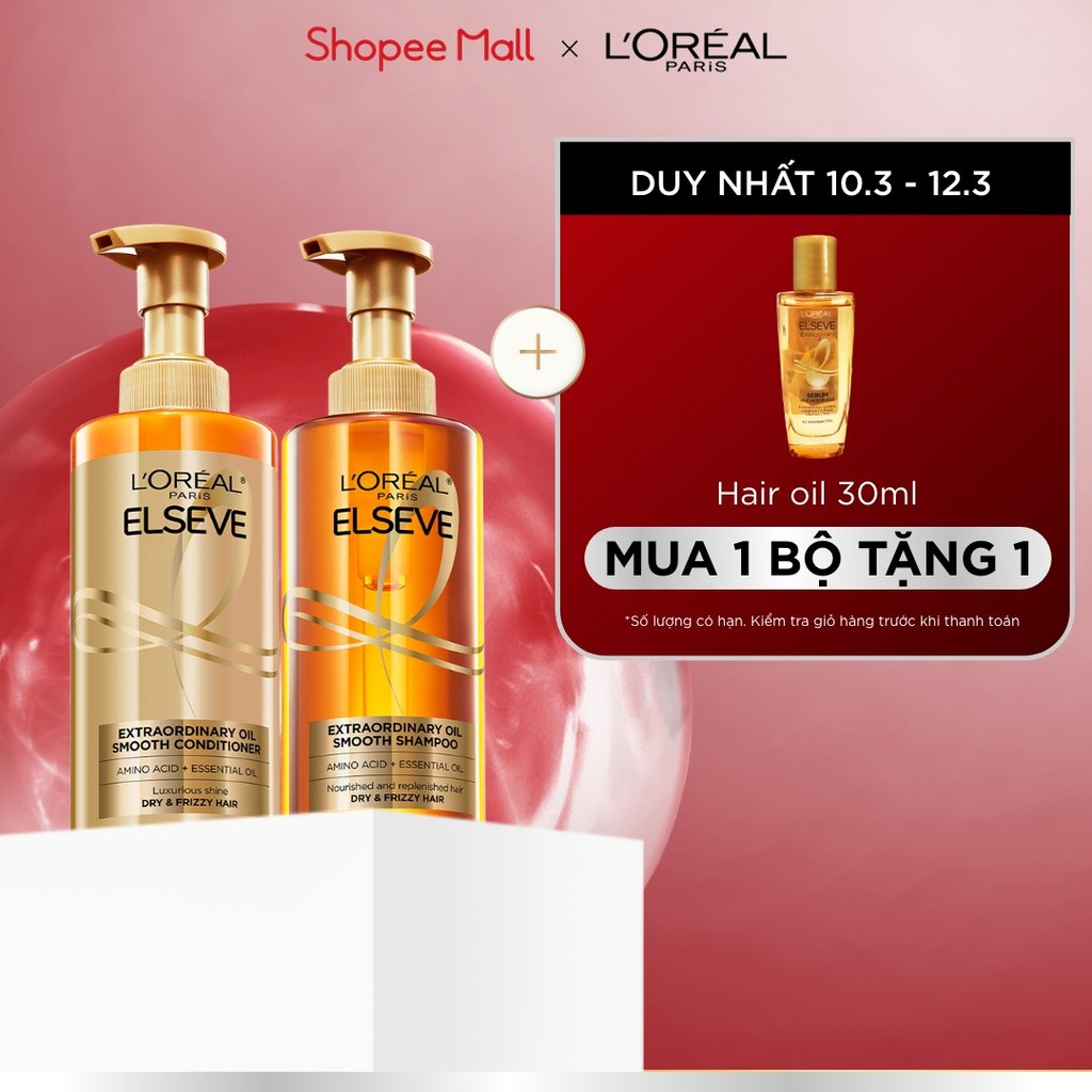 Bộ gội xả dưỡng tóc suôn mượt cao cấp L'Oreal Paris Extraordinary Oil Smooth 440ml x2