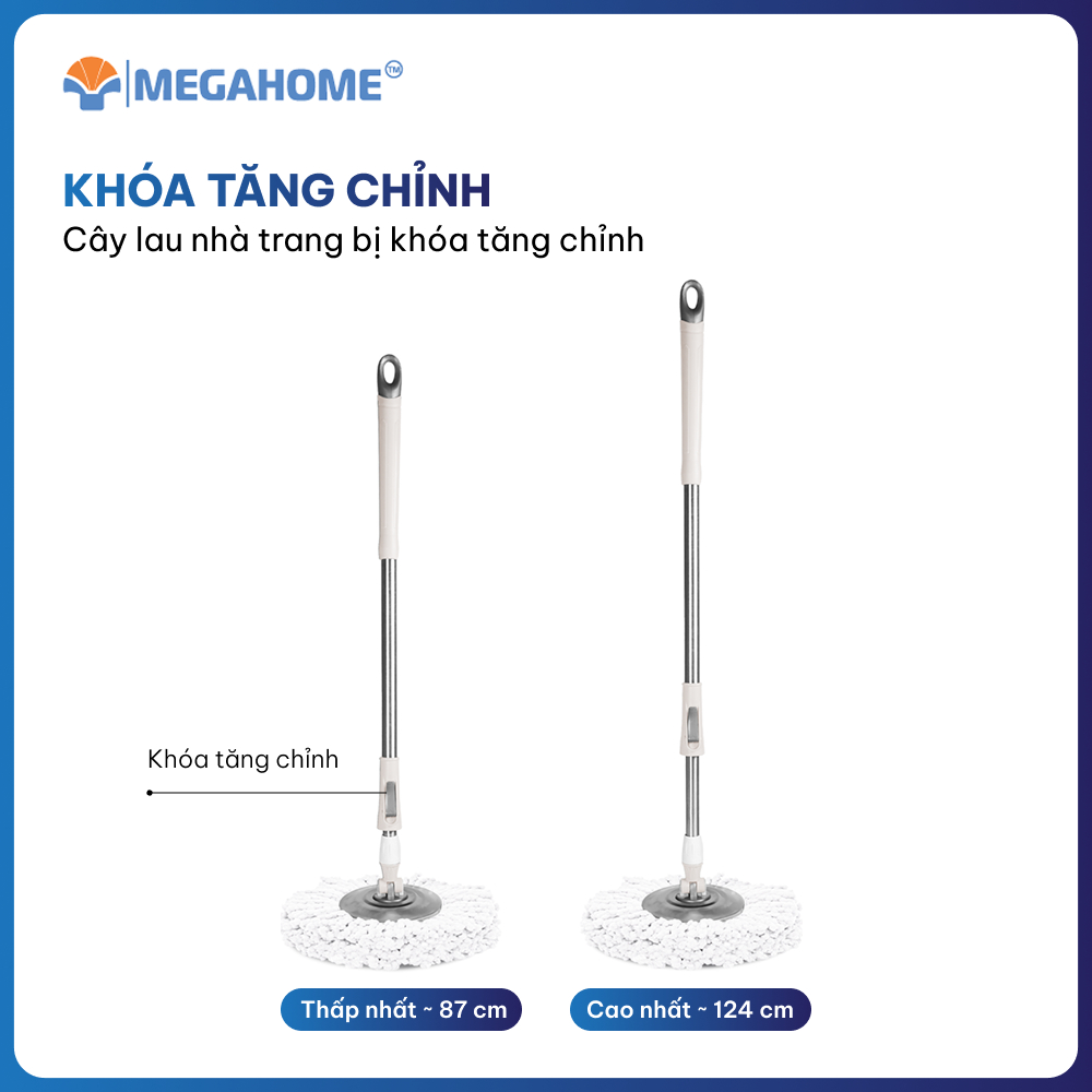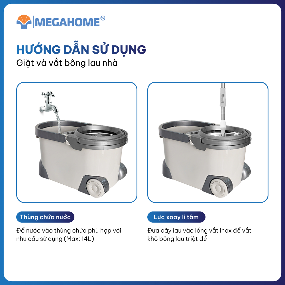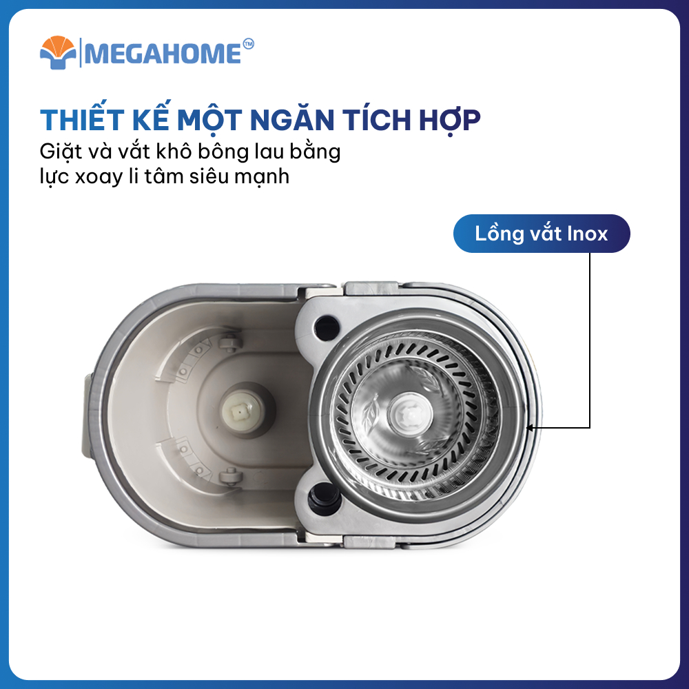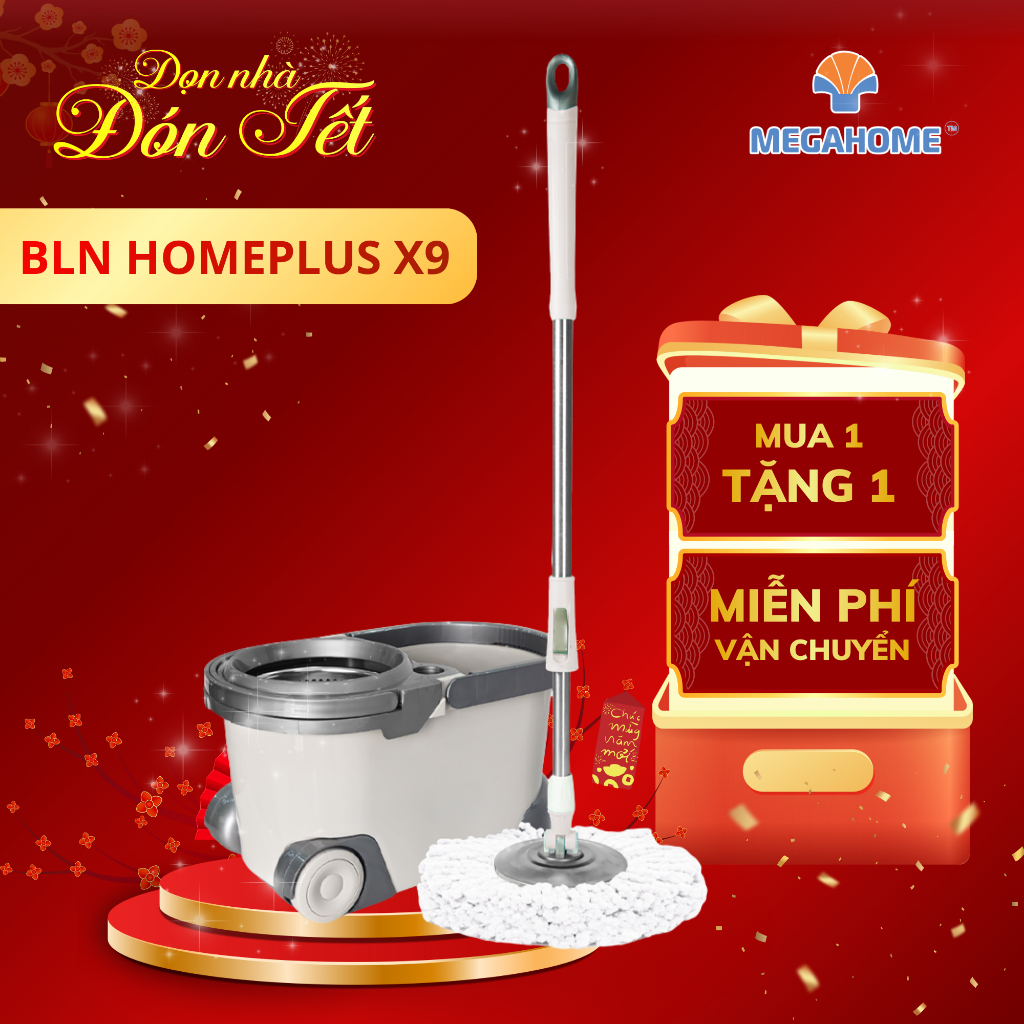 [Tặng 1 bông] Bộ lau nhà Homeplus X9 Megahome dung tích 24l, lồng vắt inox, mâm inox, xoay 360 độ