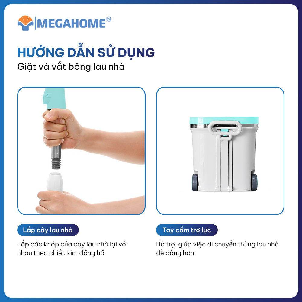 [Tặng 1 bông] Bộ lau nhà Homeplus X6 Megahome dung tích 21l, lồng vắt inox, mâm inox, xoay 360 độ