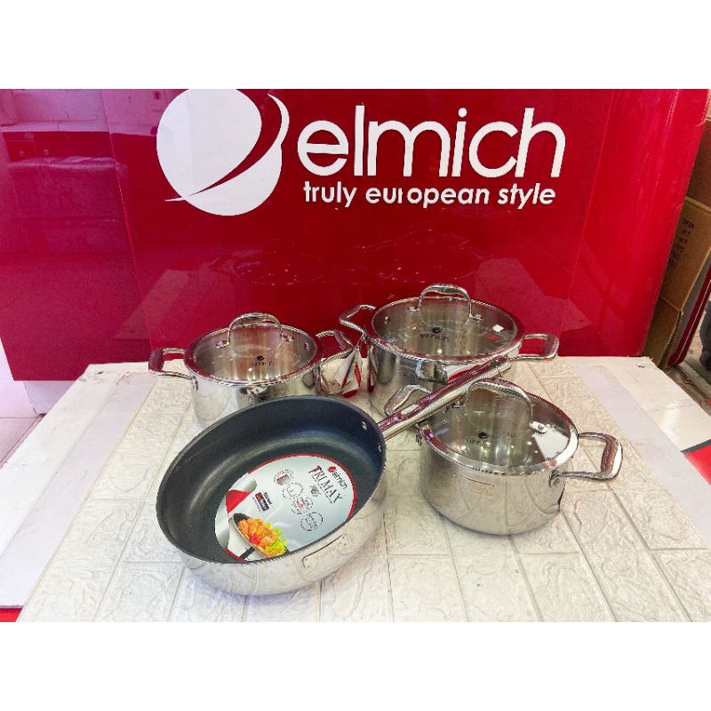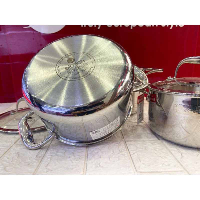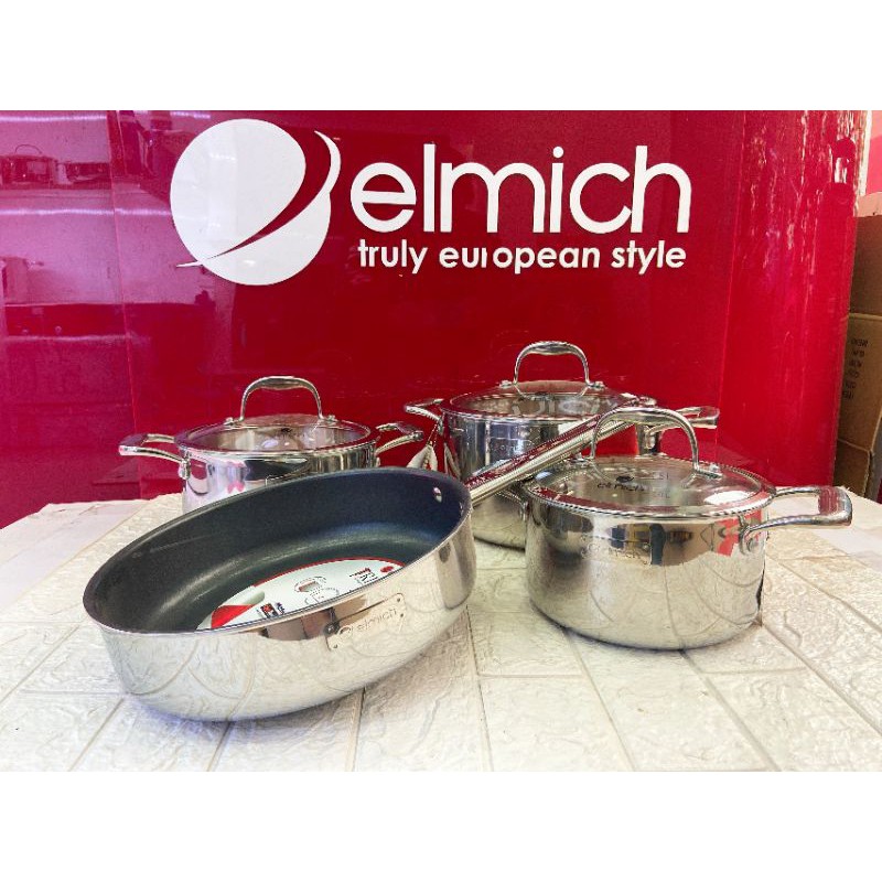 Bộ nồi chảo elmich trimax xs inox 304 cao cấp 3 lớp đáy liền Trimax XS EL-3744 size 18, 20, 24, chảo 26cm