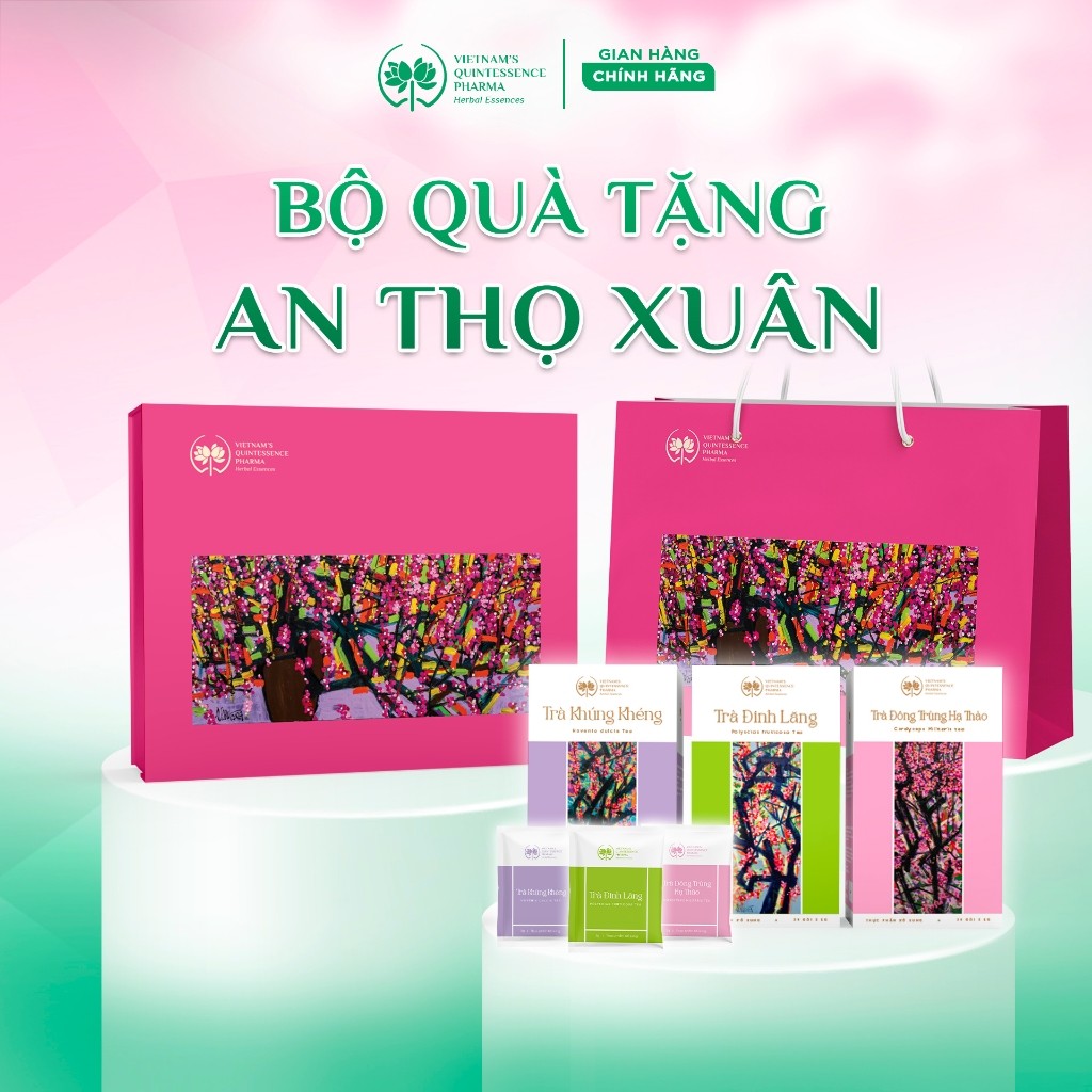 Tinh Túy Việt: Bộ quà tặng An Thọ Xuân - Trà thảo dược hòa tan - 6 hộp (2 Đinh Lăng, 2 Đông Trùng, 2 Khúng Khéng) -ATX01