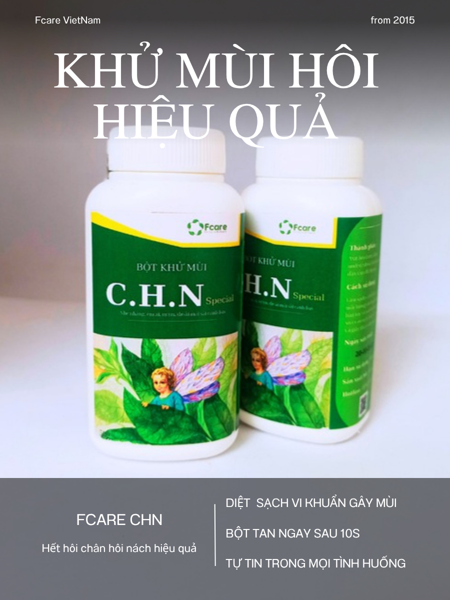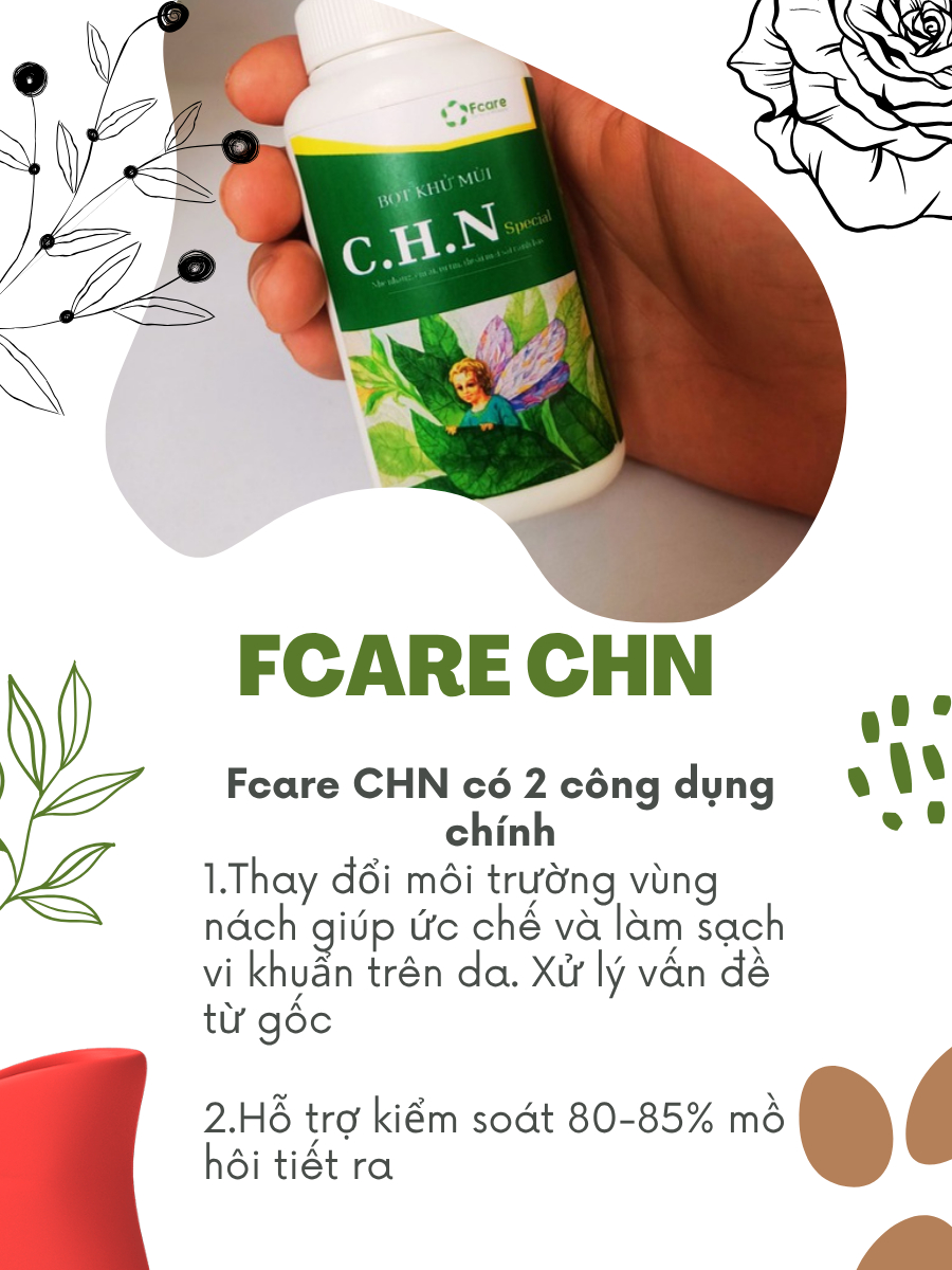 Bột Khử Mùi Hôi Nách Fcare CHN - Kiểm Soát Mồ Hôi Tay Chân Nách, Ngăn Mùi Hiệu Quả, Không Lo Ố Vàng