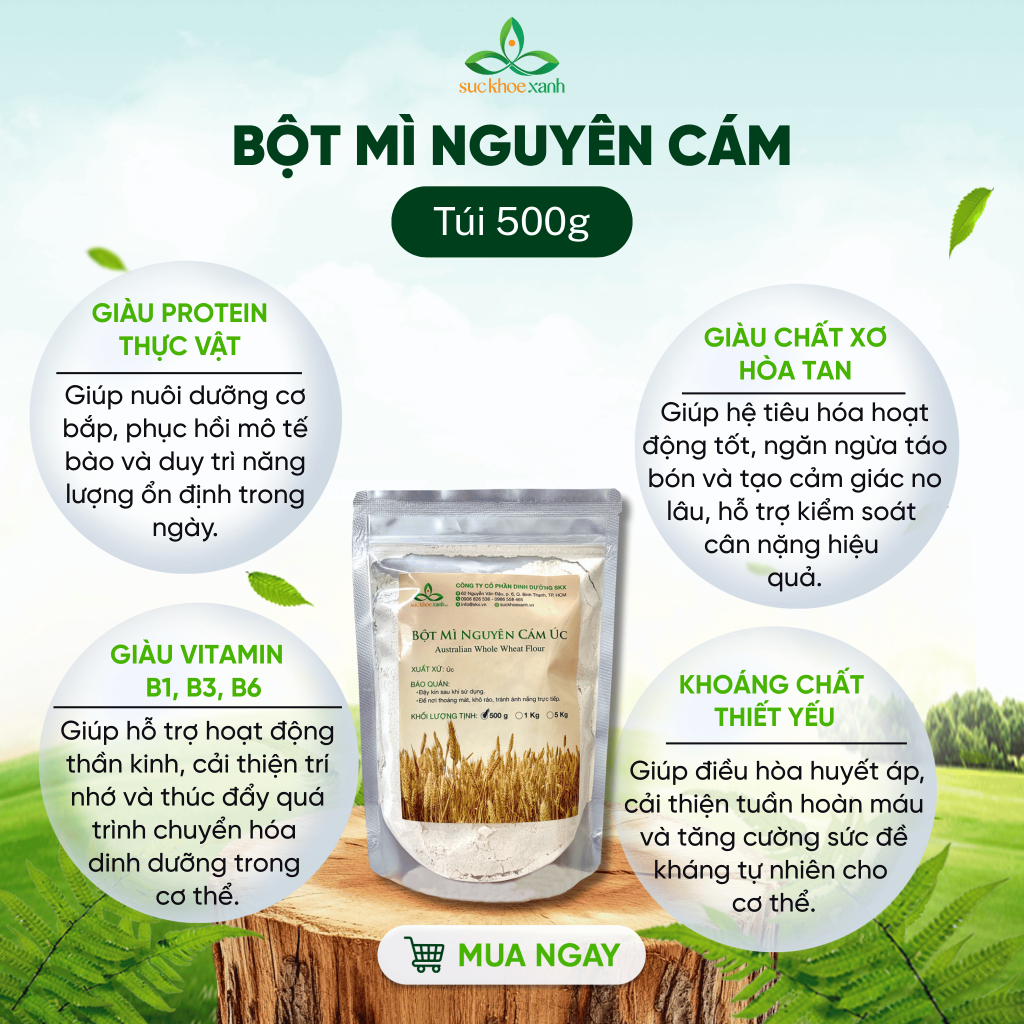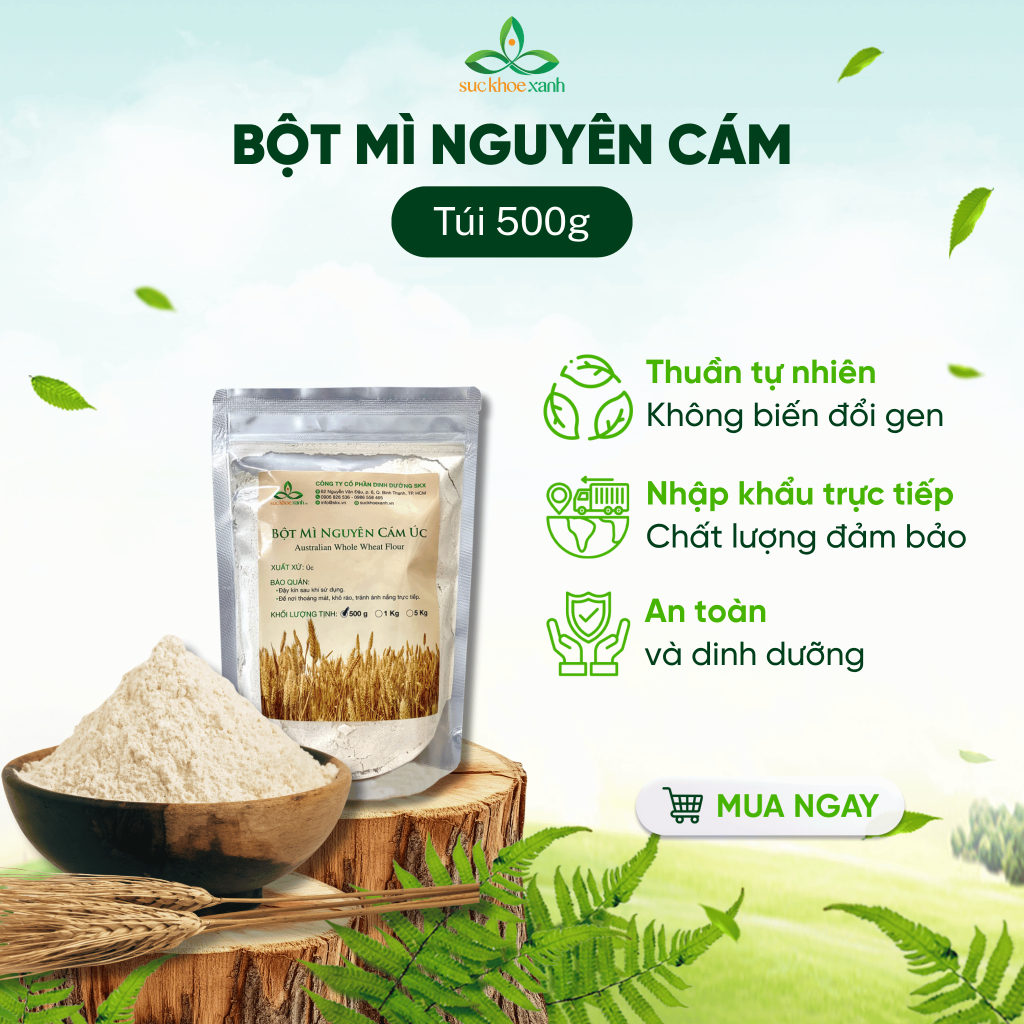 Bột Mì Nguyên Cám Úc Sức Khỏe Xanh – Giàu Protein, Khoáng Chất – Phù Hợp Người Ăn Chay, Kiểm soát đường huyết