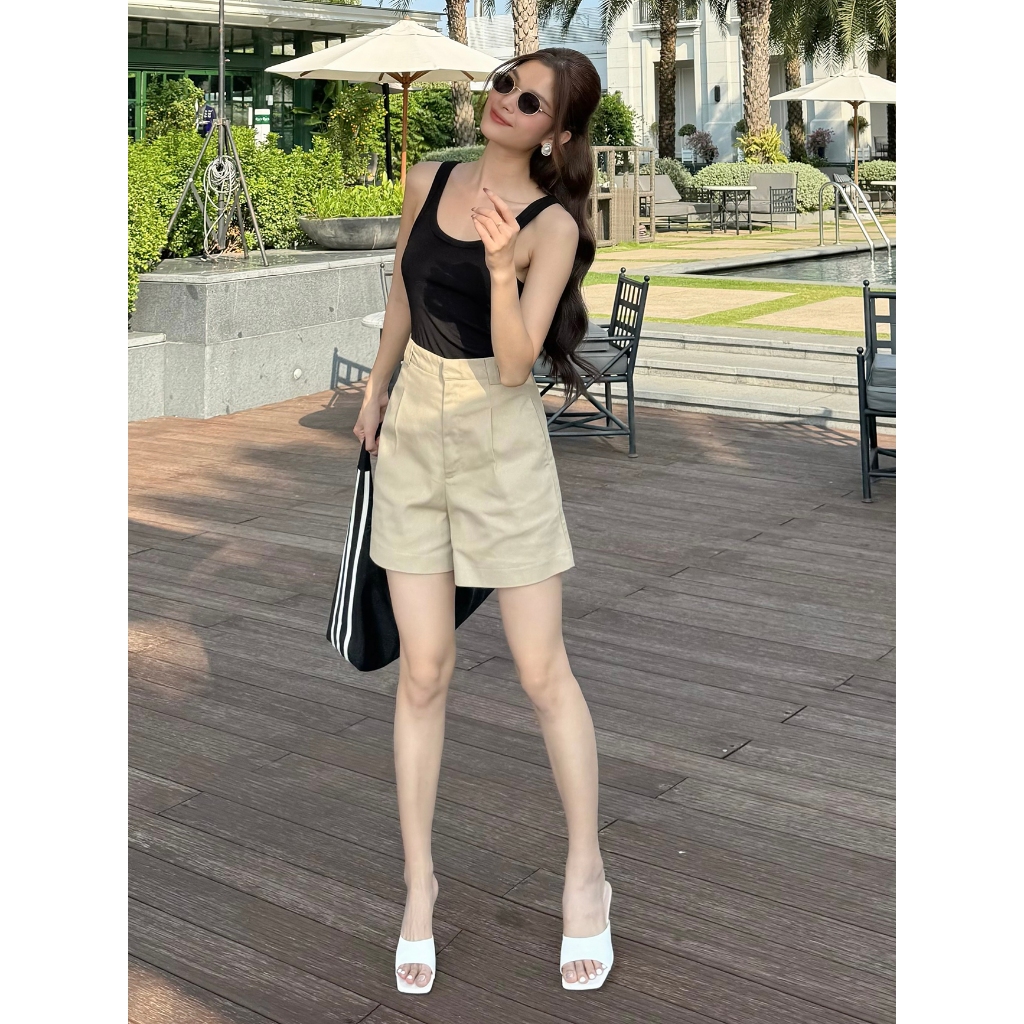 BBSTORE'S Quần Short Kaki Ống Rộng Form Ngắn Lưng Cao Có Bảng Đỉa To - Q3107
