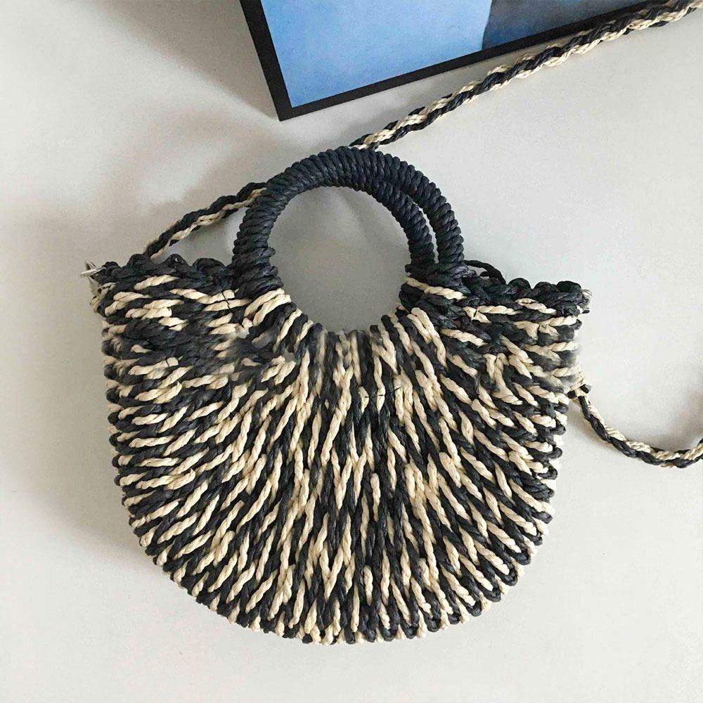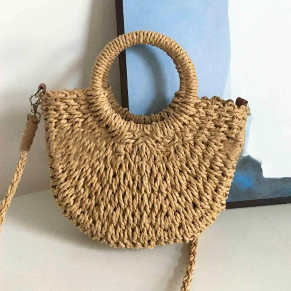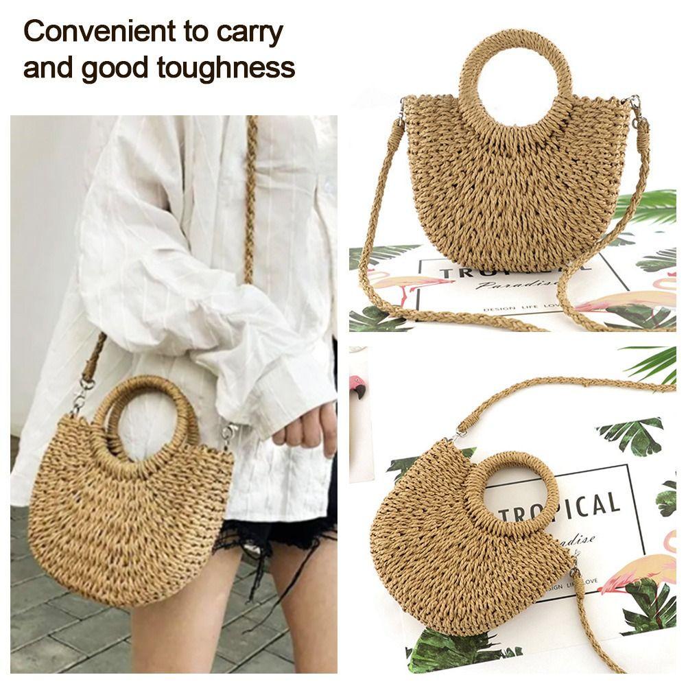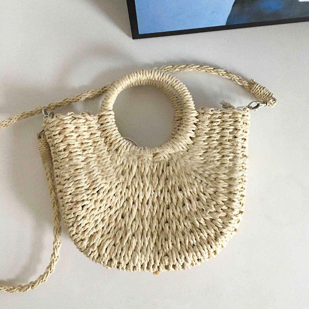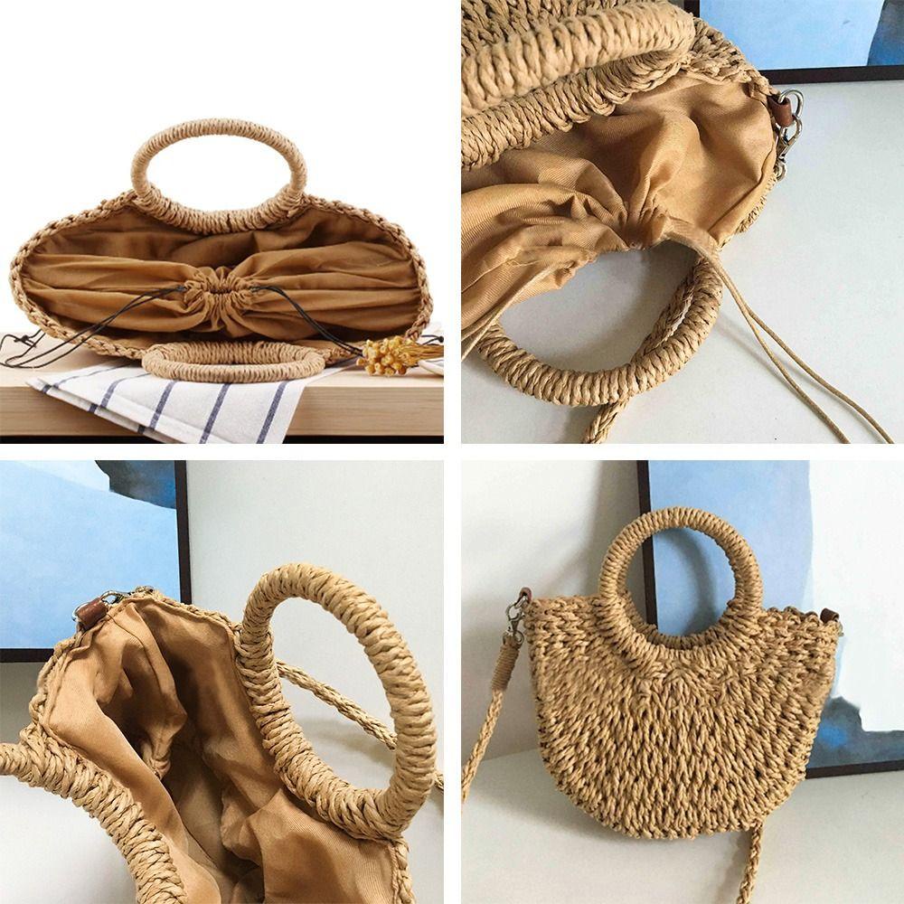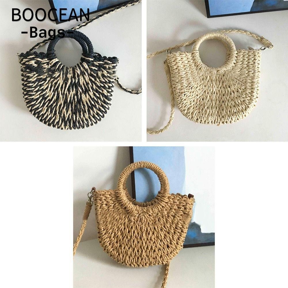 BOOCEAN Túi Handmade, Túi Rơm Dệt Đi Biển Dung Tích Lớn Hình Mặt Trăng, Túi Đi Biển Bọc Ống Hút Mùa Hè Cho Nữ
