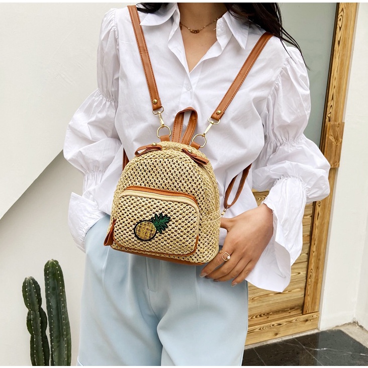 Ba lô đan cói nhỏ dễ thương quả dứa !!! trending