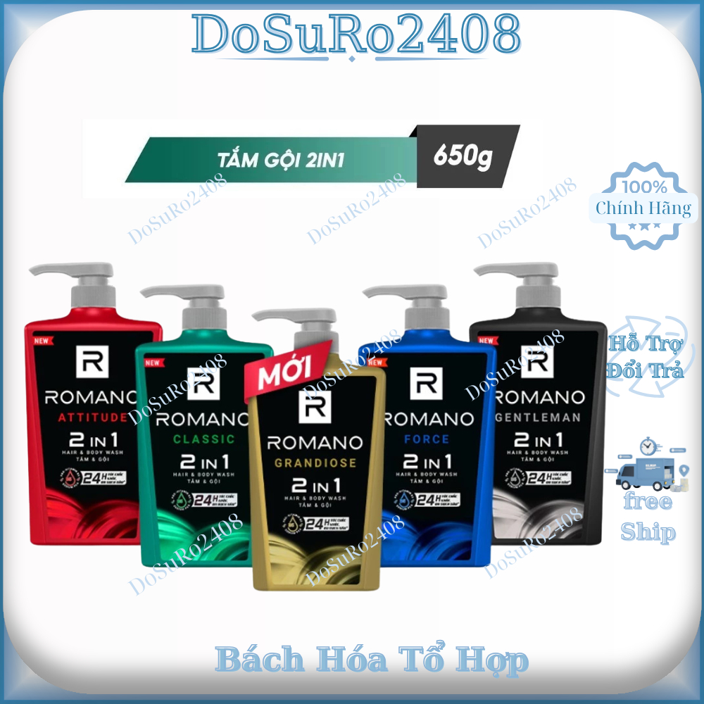 Tắm gội 2 trong 1 hương nước hoa Romano 2in1 650g/chai