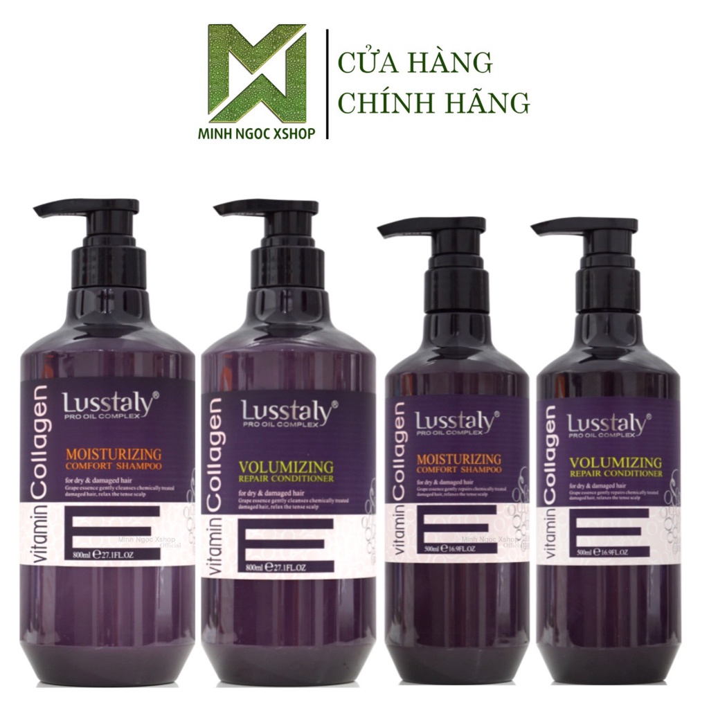 Dầu gội xả phục hồi chống gãy rụng tóc Lusstaly Vitamin E Collagen 500ML - 800ML, tóc đẹp chuẩn salon tại nhà