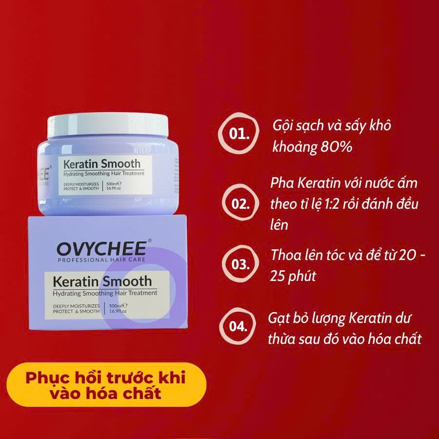 Kem Hấp Phục Hồi Ovychee Keratin Smooth 500ml - Dưỡng Tóc Hư Tổn, Mềm Mượt