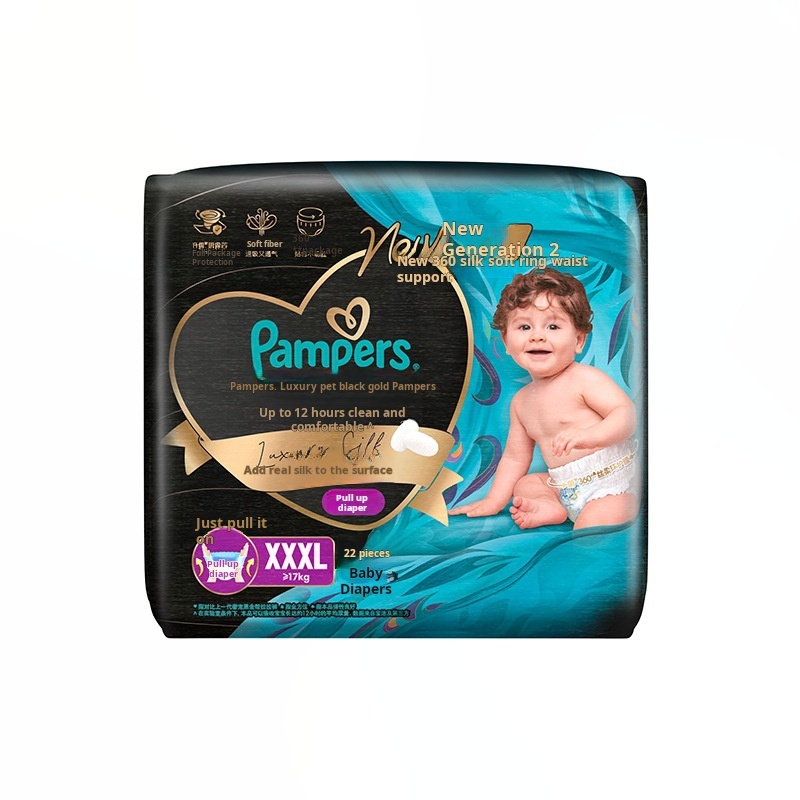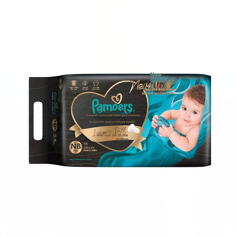 Pampers Luxury Black Gold Baby Tã lót, pull-up pants, and diapers are soft, breathable, and come in multiple models