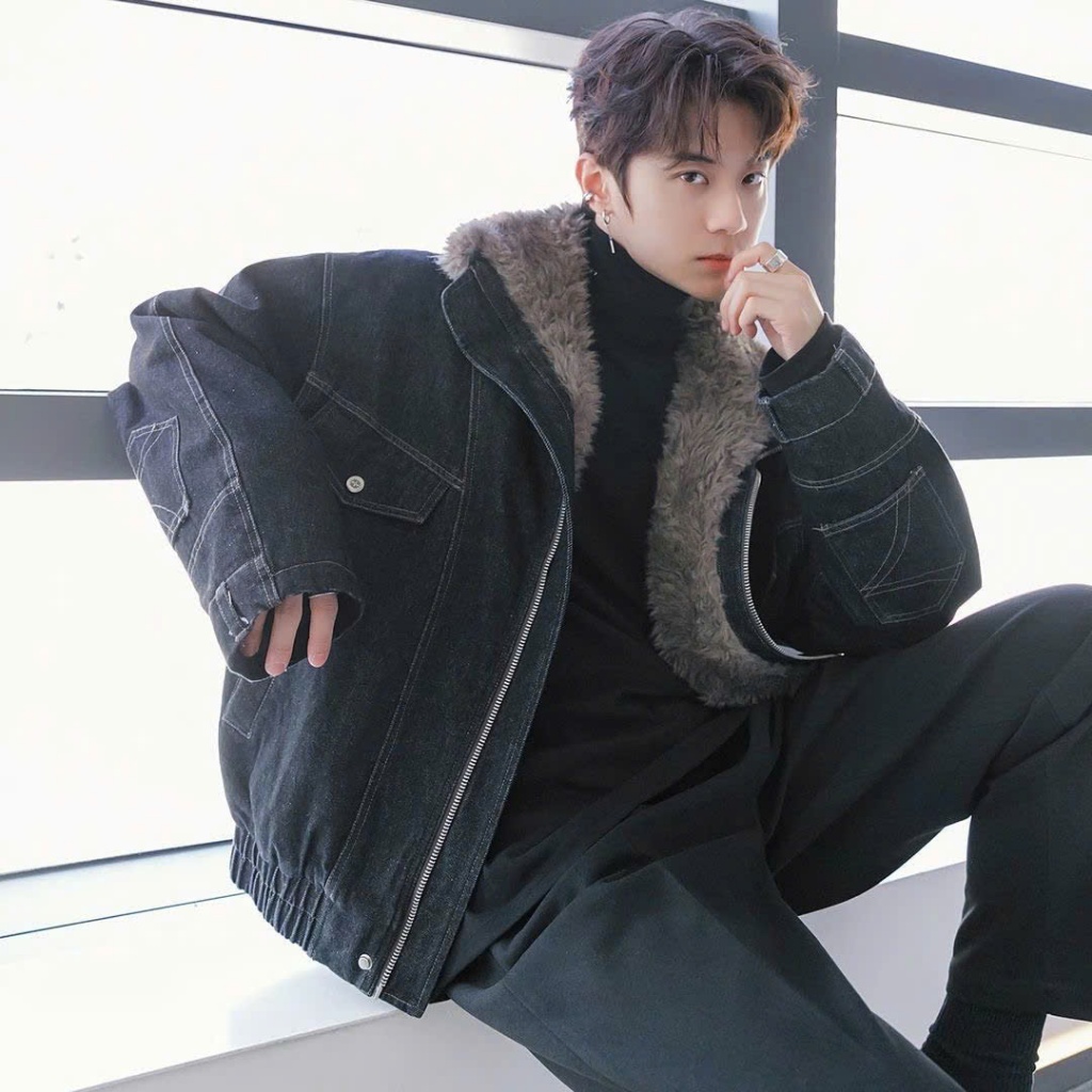 Áo Khoác Jean Denim Lót Lông Nam Dáng Rộng Phong Cách Hàn Quốc