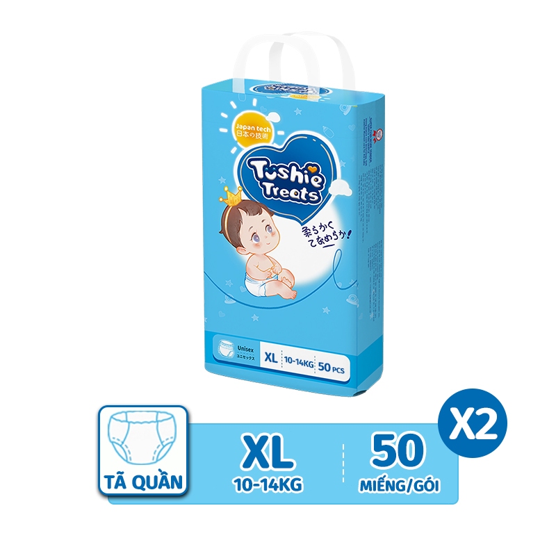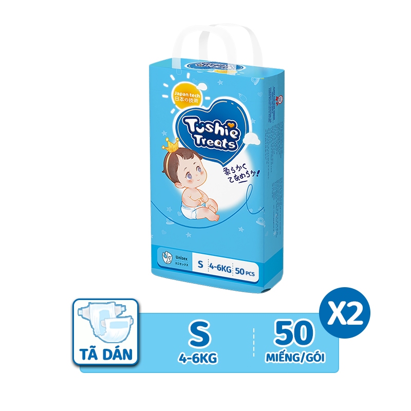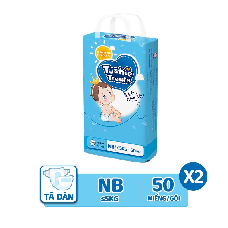 【100 Miếng 】TÃ BỈM/QUẦN Tushie Treats bỉm em bé Công nghệ Nhật bản ôm sát thấm 700ml hút thông thoáng NB-/XXXL