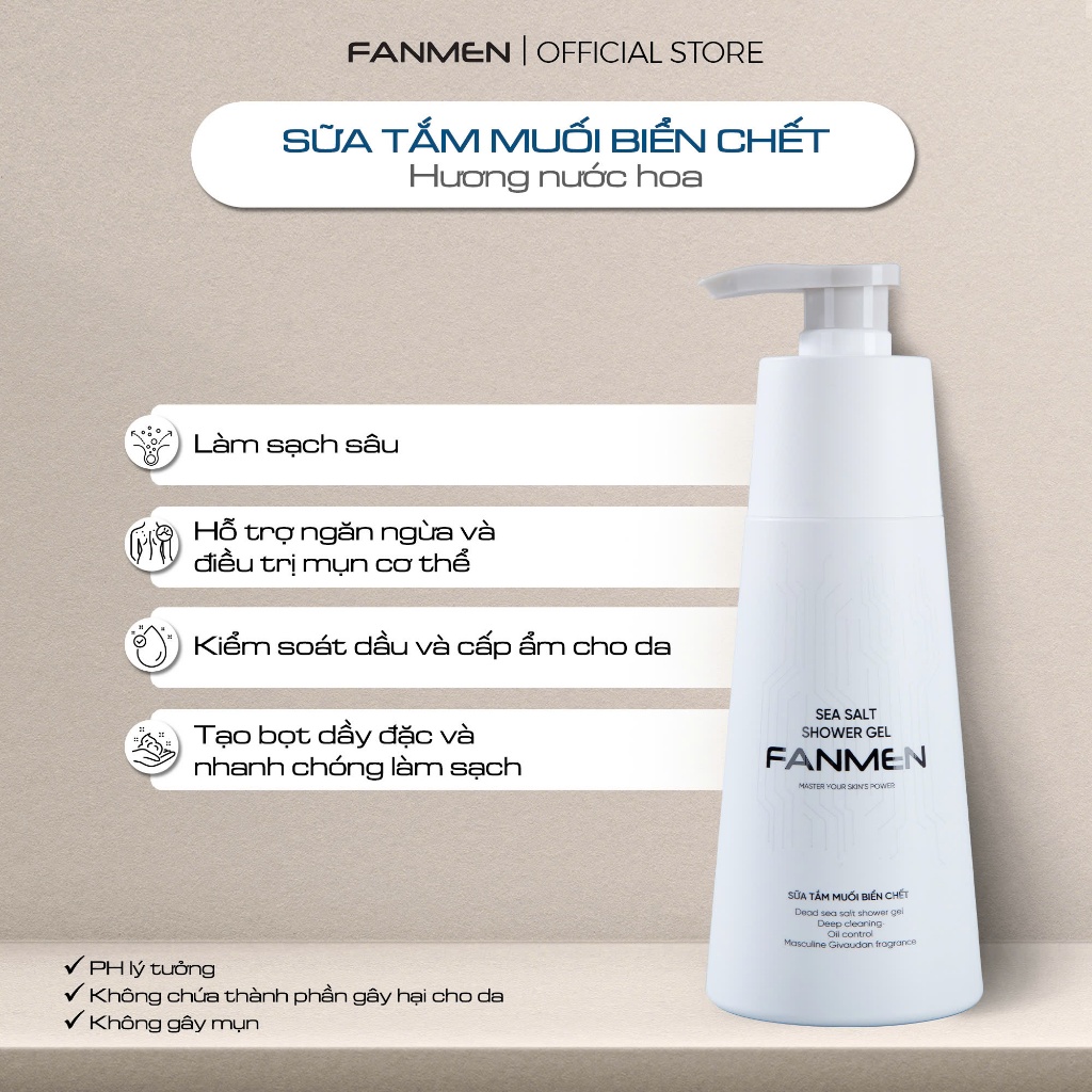 [COMBO BẢNH BAO] Dầu gội nam hỗ trợ ngăn ngừa gàu nhờn, mượt tóc và Sữa tắm muối biển chết hương thơm nam tính Fanmen